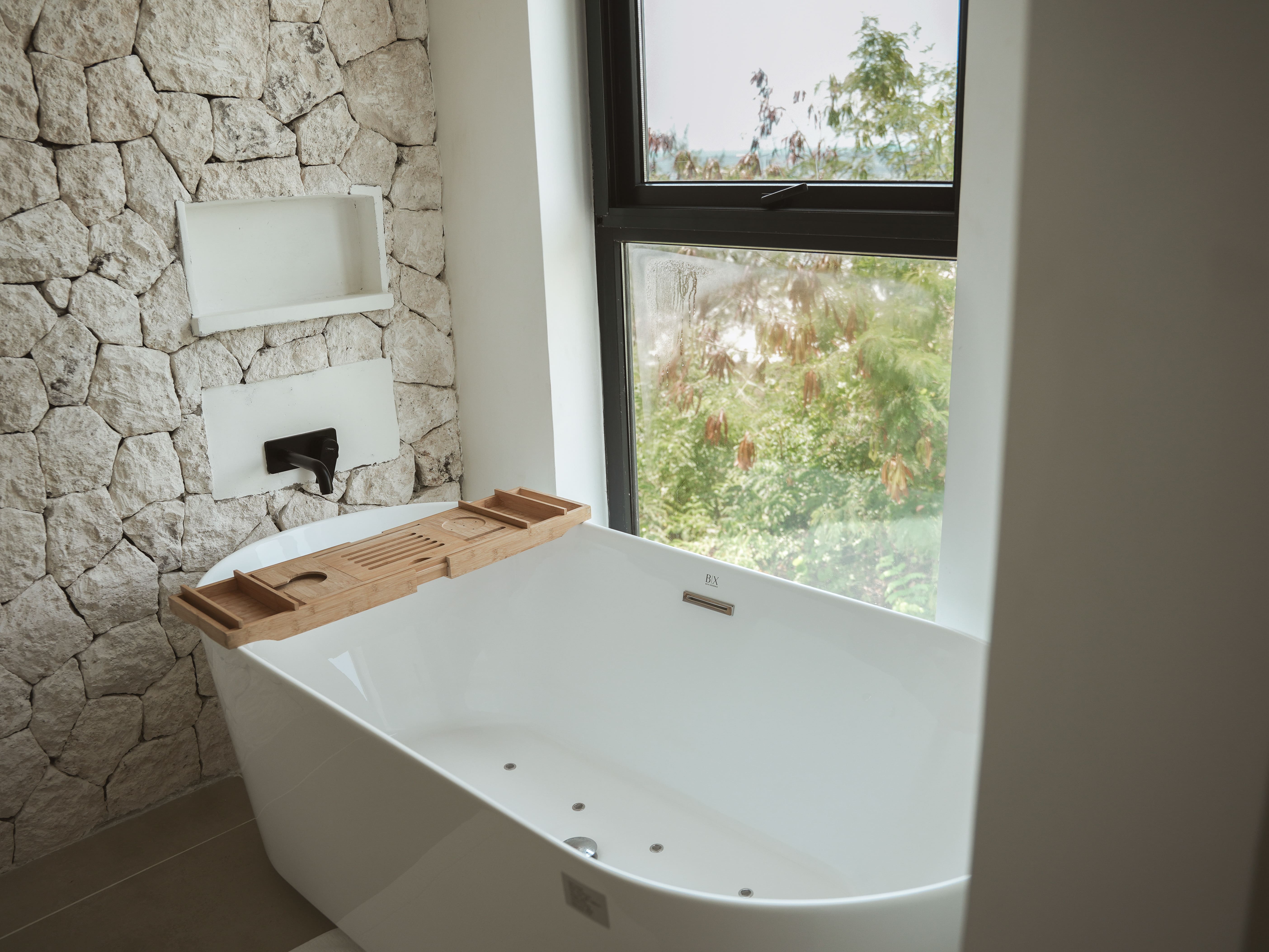 The villa’s interiors are a testament to modern luxury, with an open-plan design that accentuates the flow of natural light. On the ground floor, the spacious living area invites relaxation, featuring plush seating and a state-of-the-art entertainment system. The gourmet kitchen, equipped with top-of-the-line appliances and sleek countertops, is a chef’s dream. The villa boasts four elegantly designed bedrooms, each with its en-suite bathroom, ensuring privacy and comfort for all guests. A highlight is the master suite, which features a private hot tub, perfect for unwinding after a day of exploration.