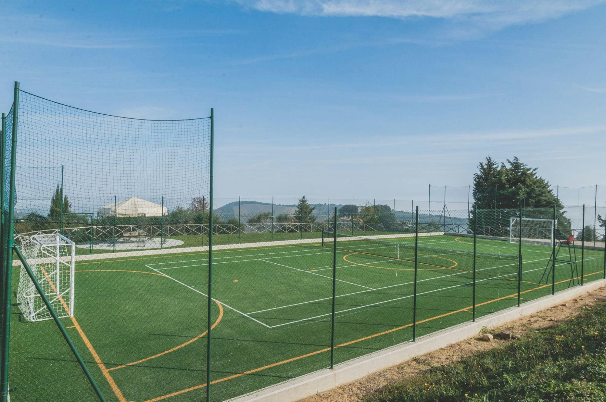 The villa’s outdoor areas are nothing short of spectacular. Unwind by the private, sun-drenched swimming pool, or enjoy a match on the versatile sports court. Expansive terraces offer panoramic views of the rolling hills, providing the perfect backdrop for al fresco dining under the Italian sun.