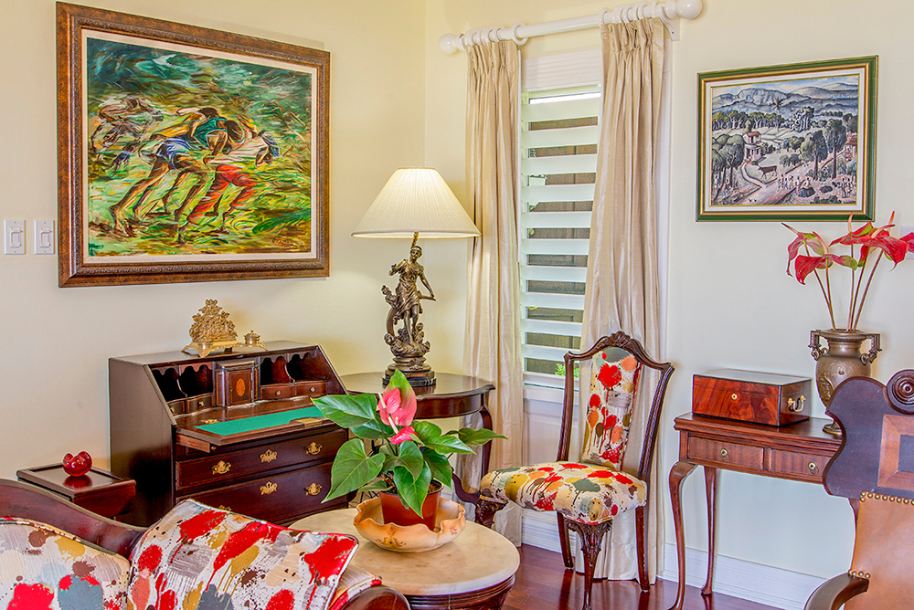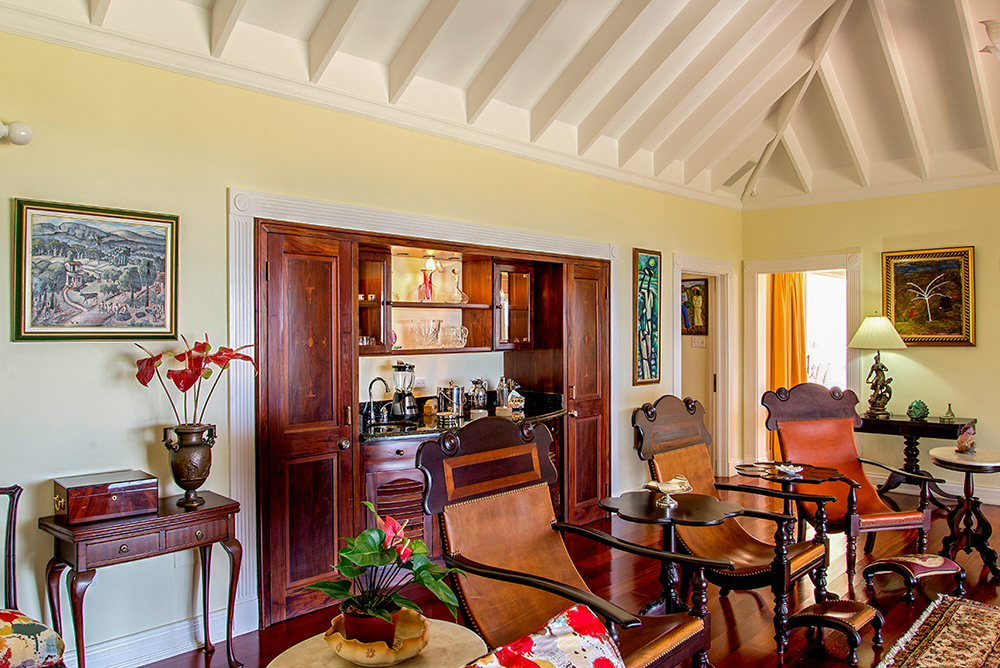 As you step inside, you’re greeted by a symphony of classic charm and contemporary comfort. The interior spaces, including the drawing room, dining room, and three bedrooms, all face the sea and lead to a spacious covered veranda. With high casket ceilings, polished wooden floors, and a curated collection of 18th and 19th-century Jamaican mahogany furniture, every corner exudes timeless elegance. Dining is an exquisite affair, whether indoors with fine silverware and delicate porcelain or al fresco on the veranda amidst the gentle sea breeze.