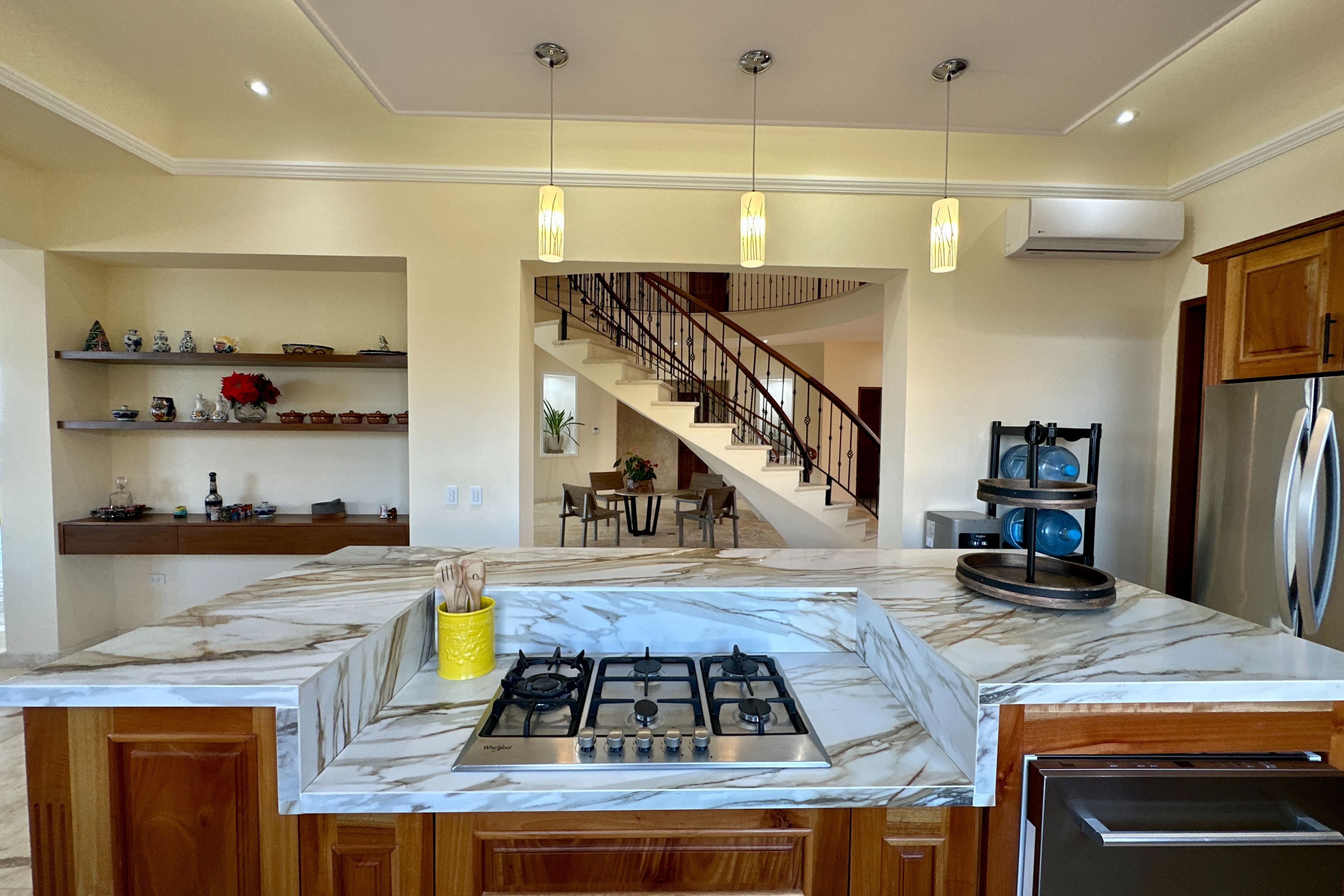 Step inside Casa Ceiba, where elegance meets comfort in every corner. The villa boasts five spacious bedrooms, each with its own en-suite bathroom, ensuring privacy and convenience for all guests. The open-plan living area is a masterpiece of modern design, featuring plush seating and state-of-the-art entertainment systems. The fully equipped kitchen is a culinary haven, perfect for those who enjoy cooking or wish to hire a private chef to indulge in gourmet meals.