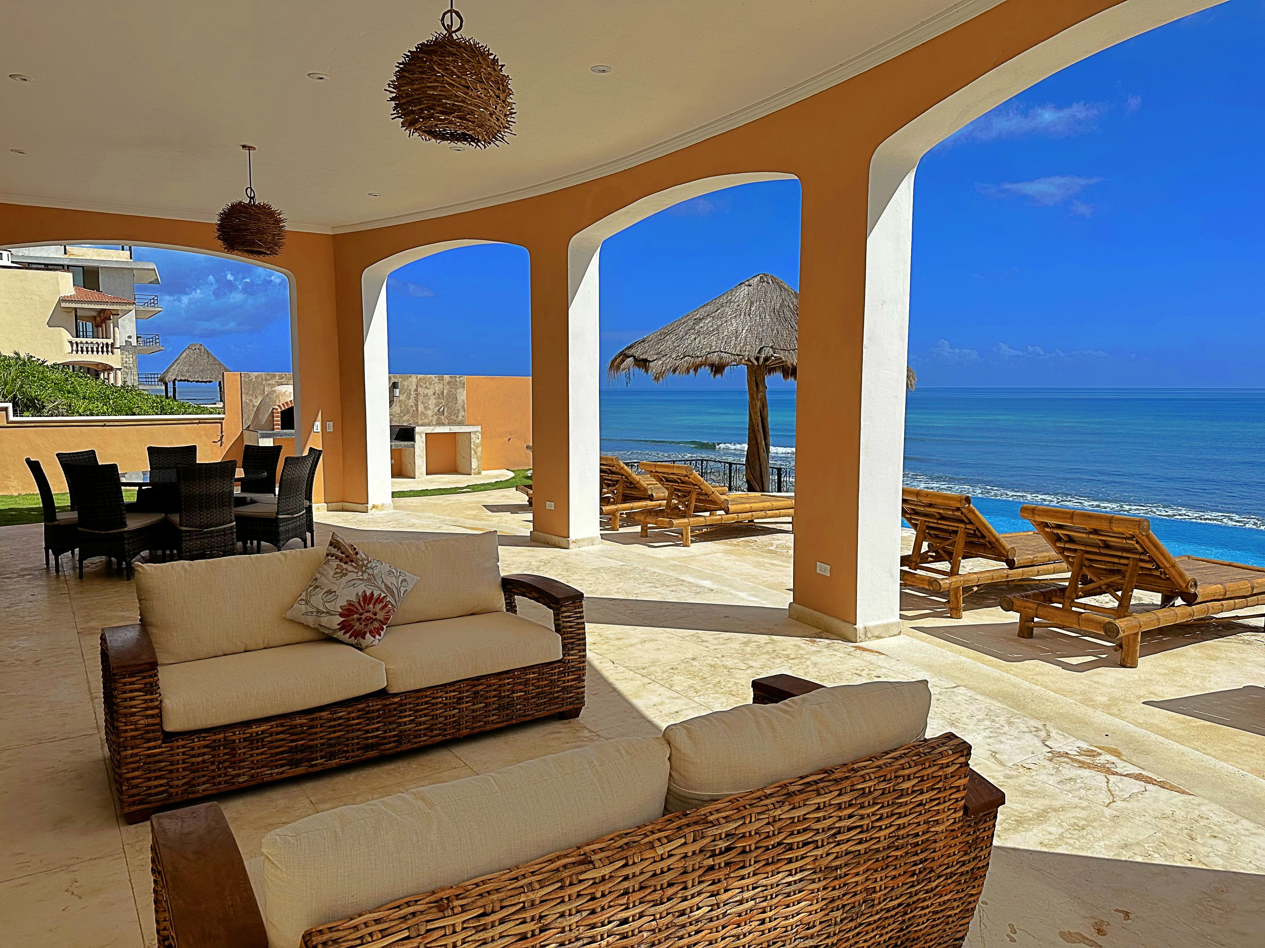 Accommodating up to 12 guests, this penthouse features five bedrooms and five bathrooms, ensuring comfort and privacy for all. Free parking is available, and while curtains are missing from the lounge, the overall ambiance remains delightful. Supervision is required around the unfenced pool area. Browse our luxury villa rentals in Mexico for more properties.