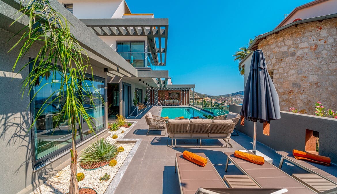 Breath-taking Mediterranean Sea views await to welcome you when you vacation in the brand new Villa Karpuz, overlooking exclusive Kalkan, on Turkey’s Turquoise Coast. This sleek and chic villa has four spacious ensuite double bedrooms, and can comfortably accommodate up to eight guests in some style.