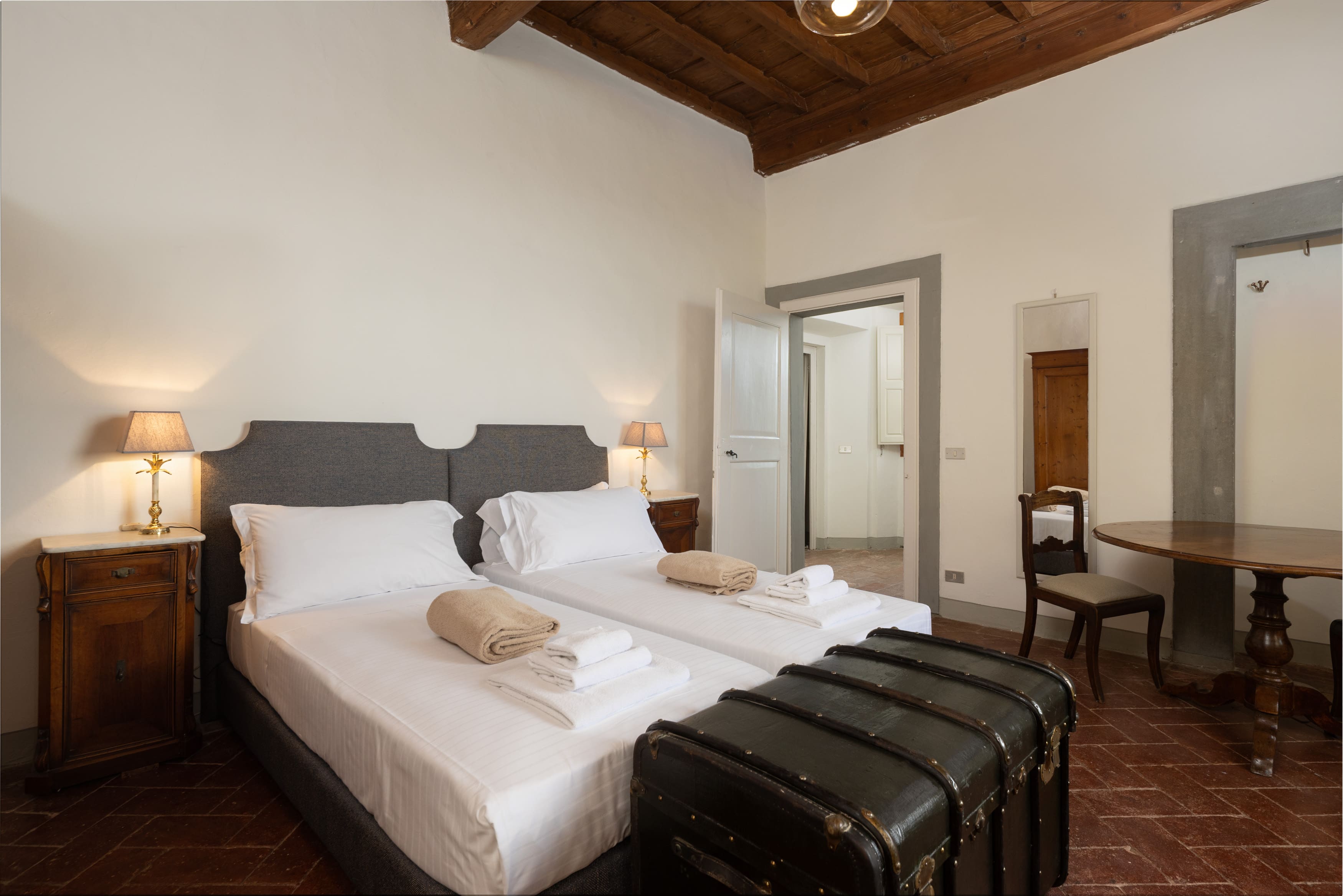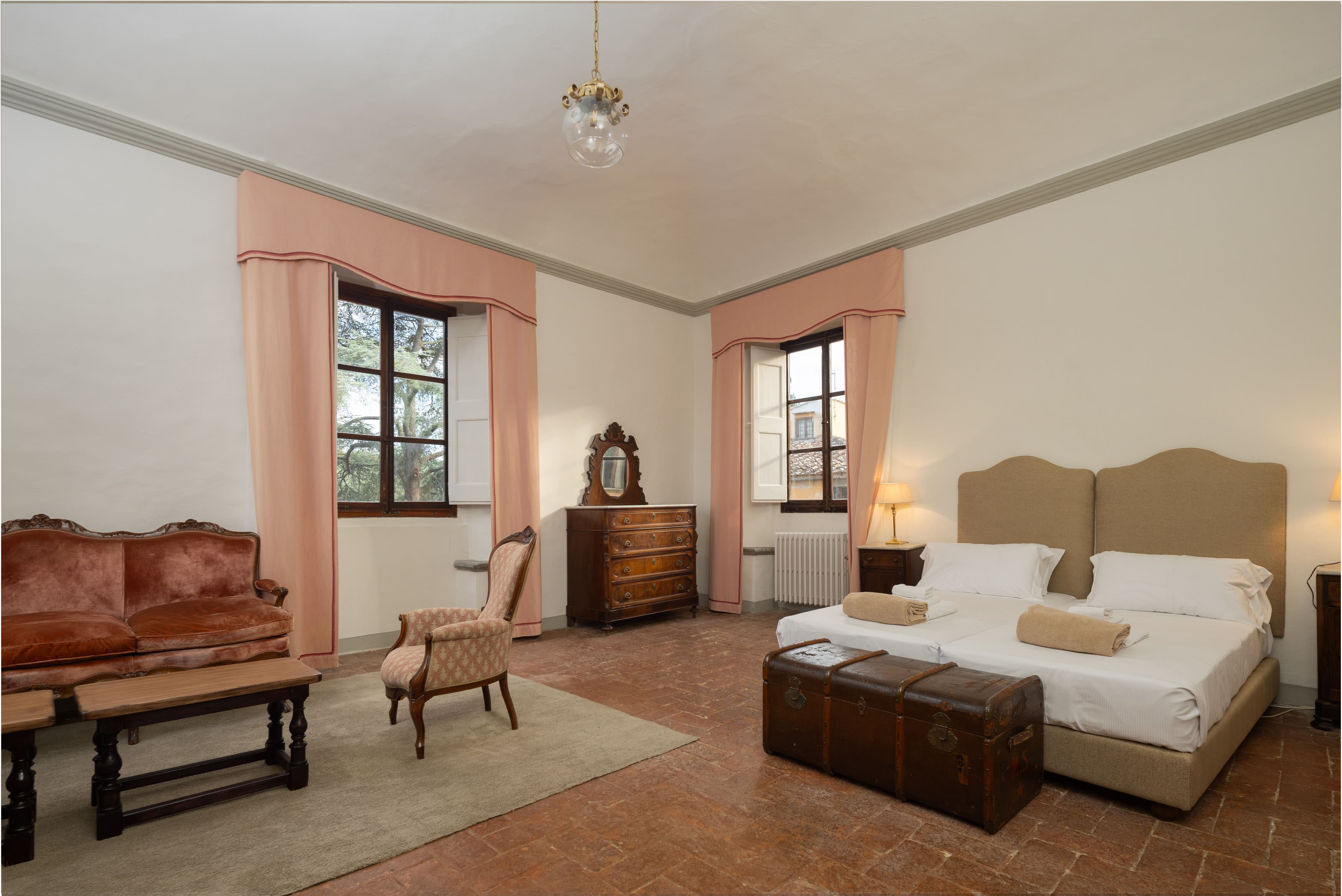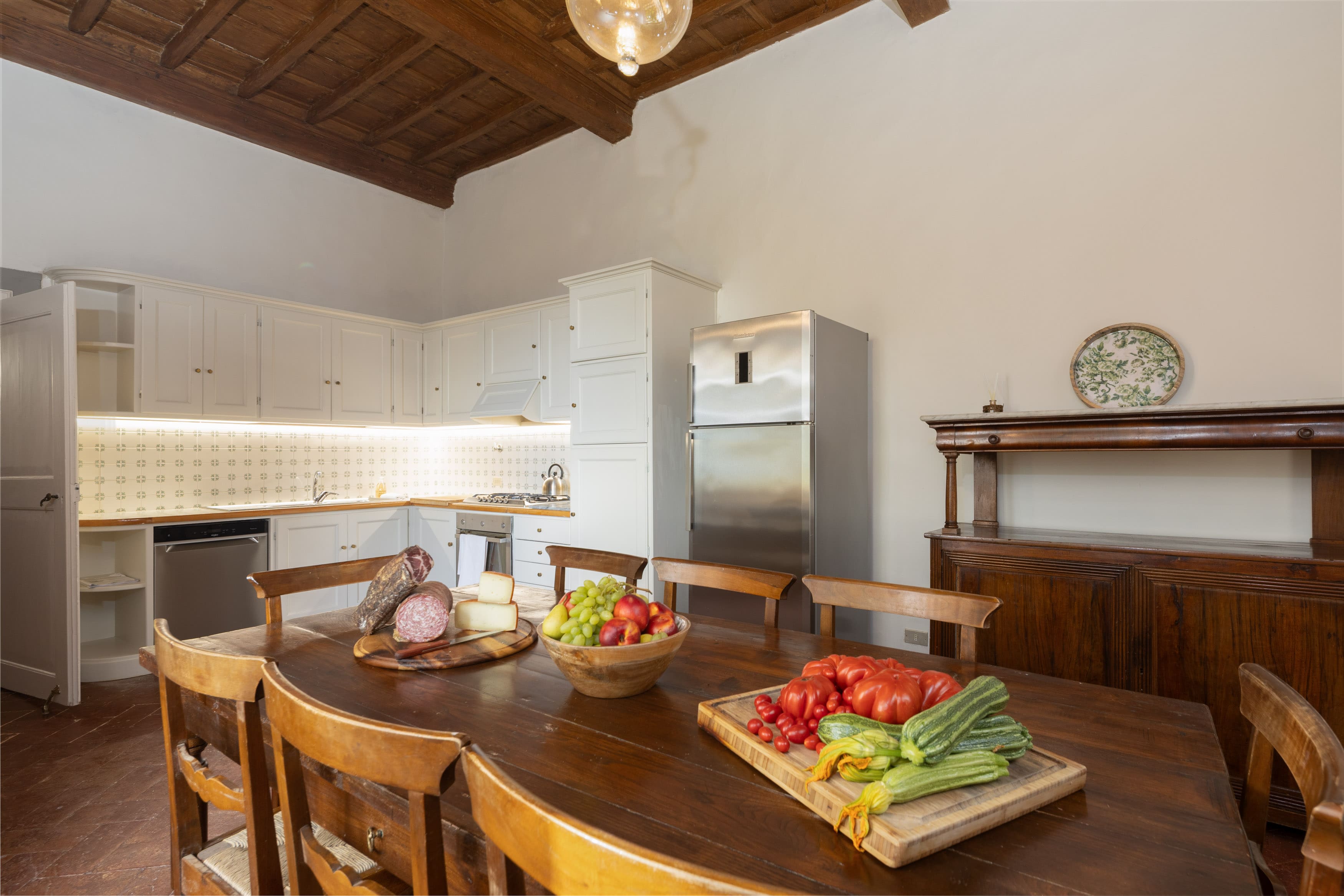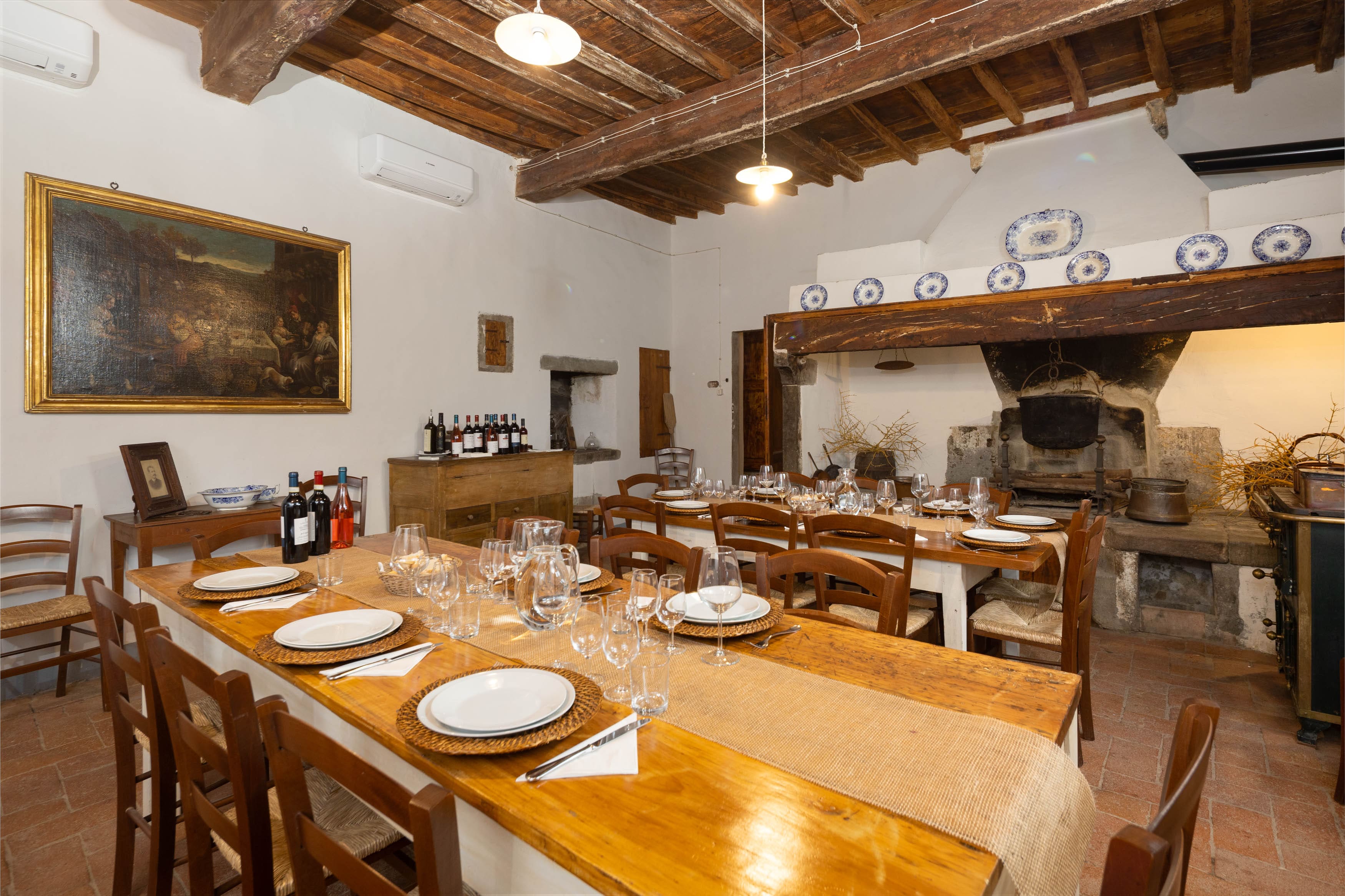 Step inside to discover expansive interiors that seamlessly blend traditional Tuscan architecture with contemporary amenities. Each of the seven bedrooms is a sanctuary of comfort, featuring unique period details and luxurious en-suite bathrooms. The villa’s two fully equipped kitchens and spacious living areas make it perfect for entertaining large groups. With frescoed ceilings and hand-picked antiques, every corner of this villa tells a story of its rich heritage.