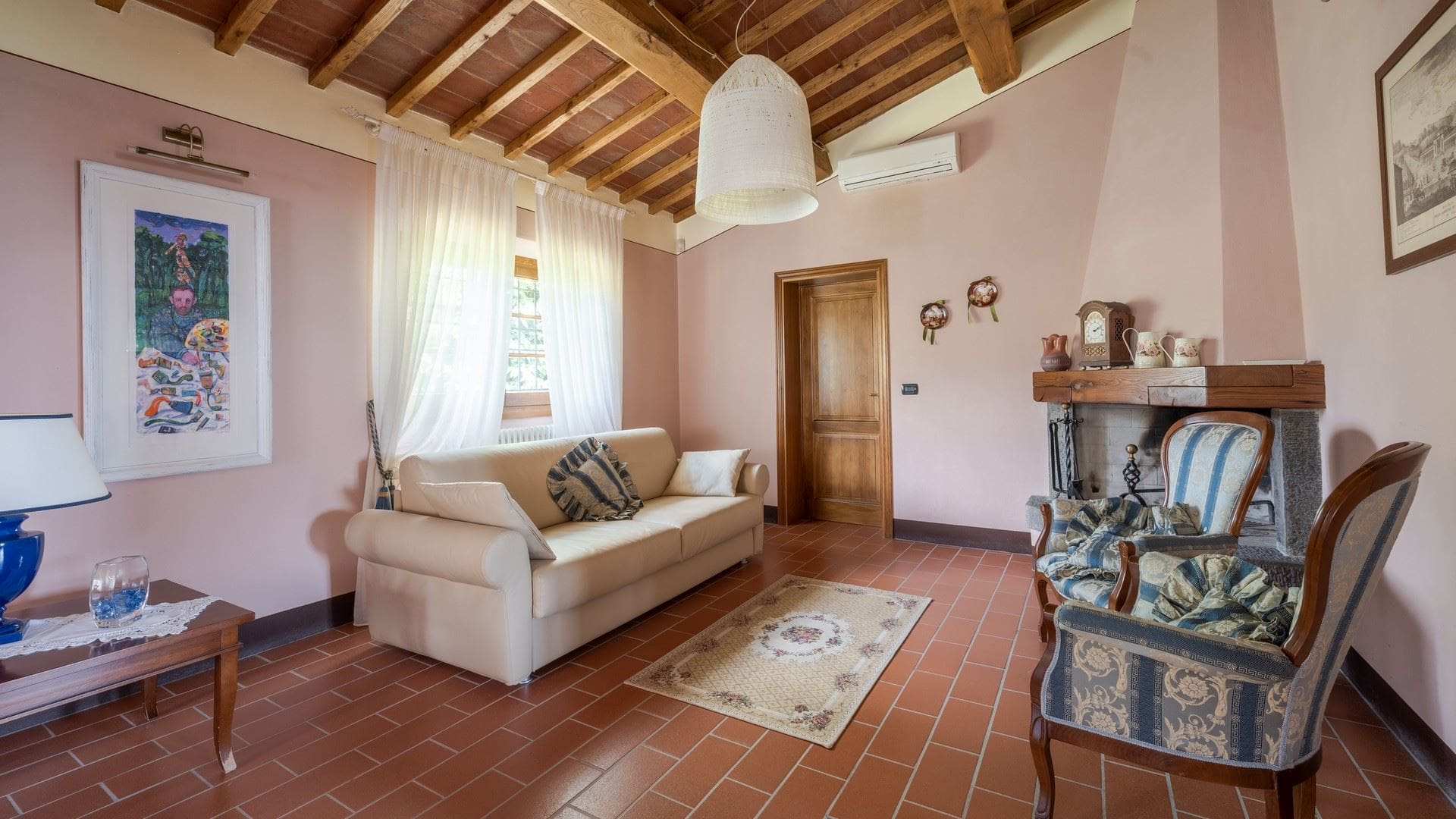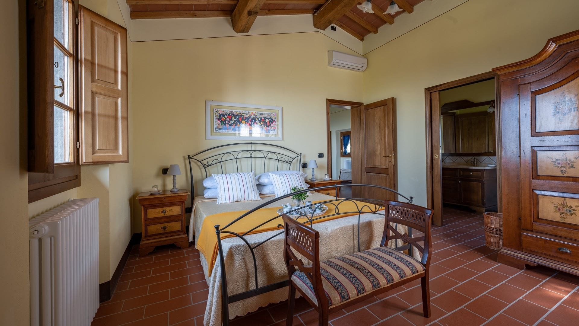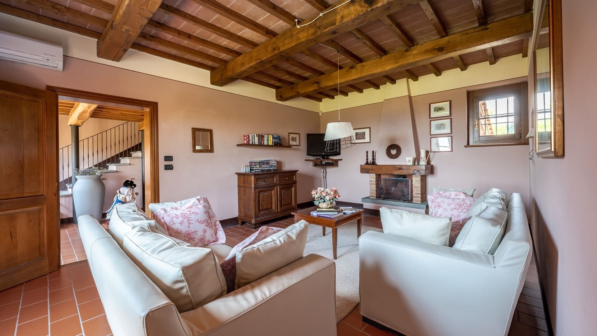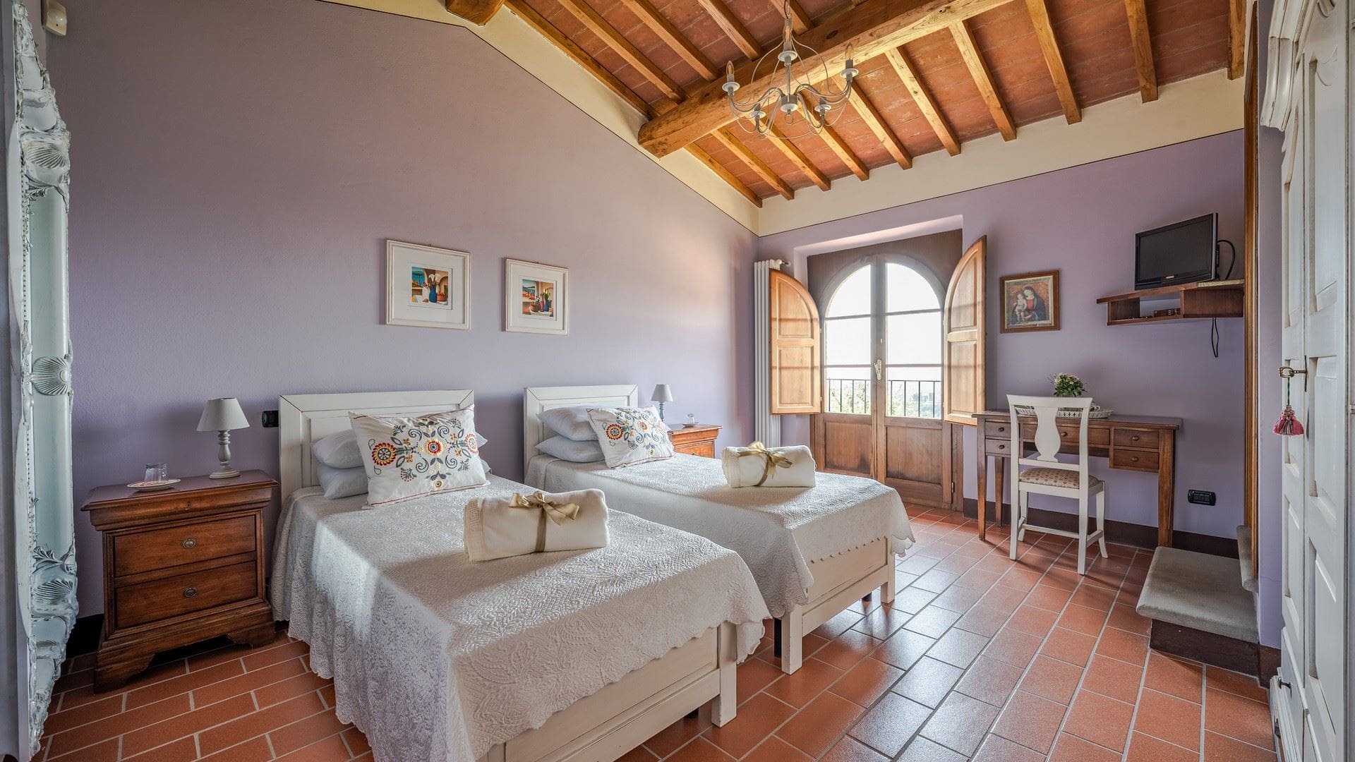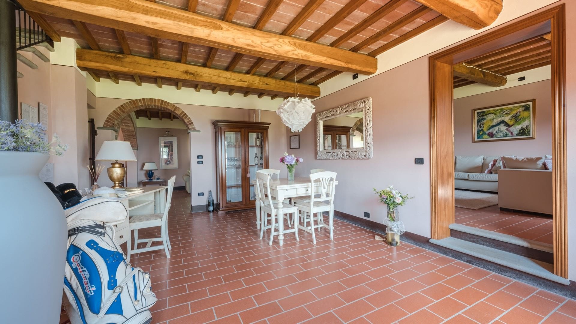 Step inside to find a perfect blend of rustic elegance and contemporary comfort. The villa offers five meticulously designed bedrooms, each with its own unique style. The ground-floor bedroom, complete with an en-suite bathroom, is perfect for guests with limited mobility. The living areas are spacious and inviting, featuring a mix of traditional Tuscan decor and modern amenities. The kitchen is fully equipped for all your culinary needs, ensuring every meal is a delight.