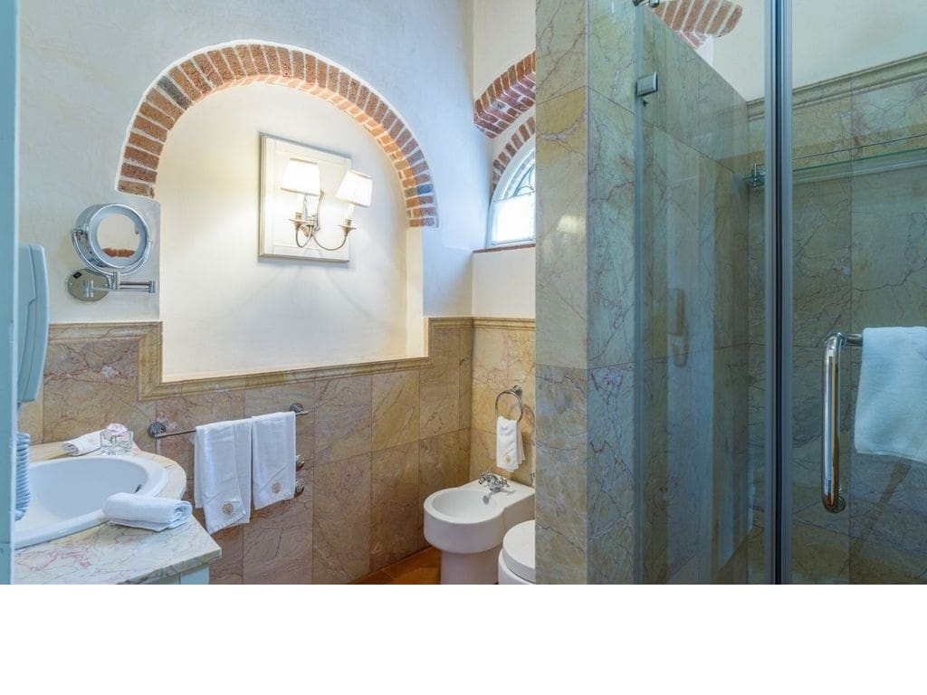 Step inside Villa Medici Pieve and discover a world of refined elegance. The main villa and annexe are thoughtfully designed across three floors, boasting a harmonious blend of classic and contemporary styles. Spacious living areas invite relaxation, while the fully equipped kitchen is perfect for preparing Tuscan feasts. Each of the 13 bedrooms offers a private sanctuary, with many featuring their own sitting areas for added comfort and privacy. While some rooms are accessible only from the outside, every space maintains a consistent level of style and quality.
