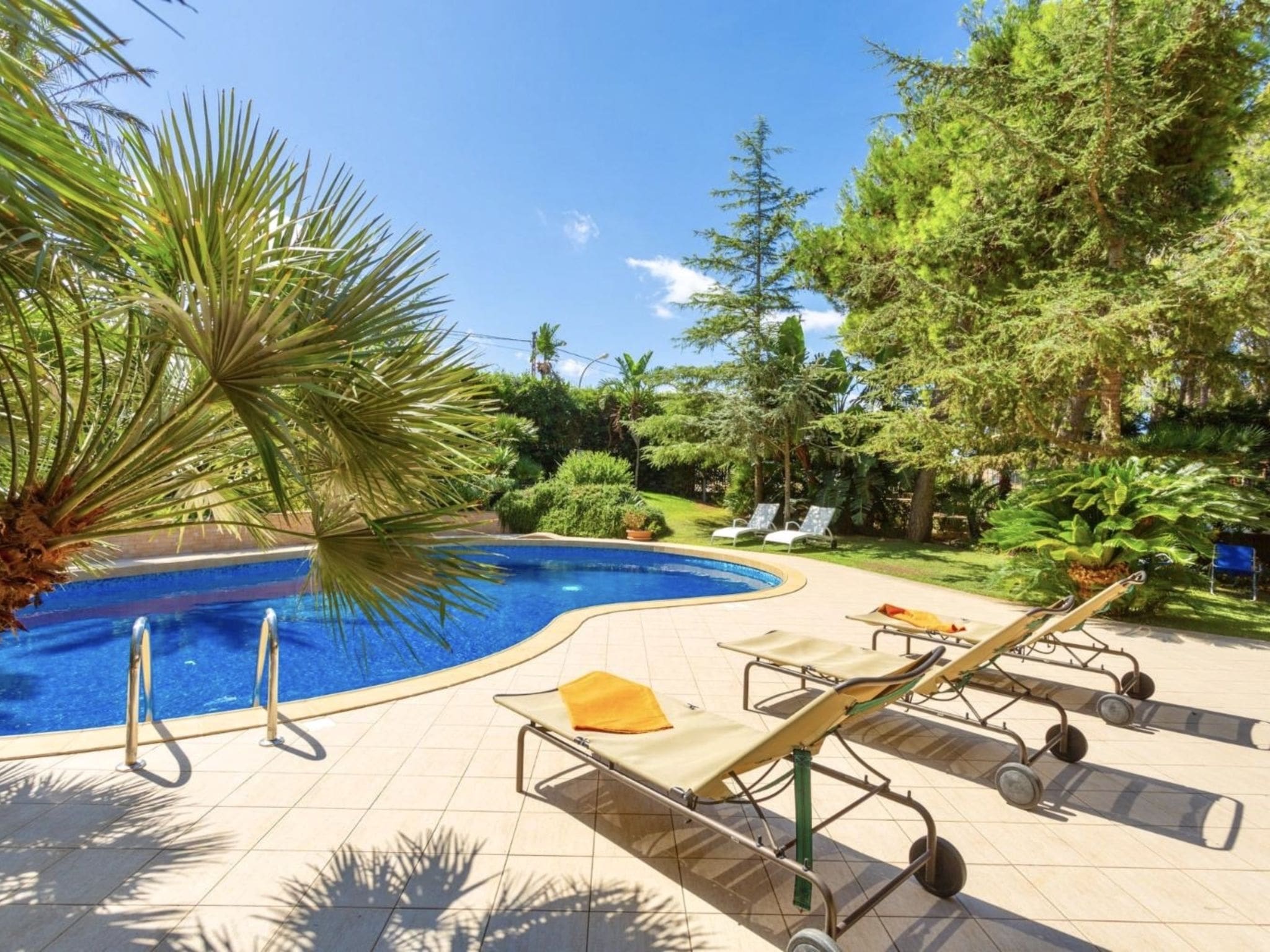 The villa’s outdoor spaces truly shine, set within 700 square metres of beautifully landscaped grounds. The centrepiece kidney-shaped swimming pool measures 8 by 12 metres with depths ranging from 1.5 to 2.4 metres, available for enjoyment from June through September. Professional pool maintenance ensures pristine conditions throughout the season, while an outdoor shower provides convenient poolside refreshment.