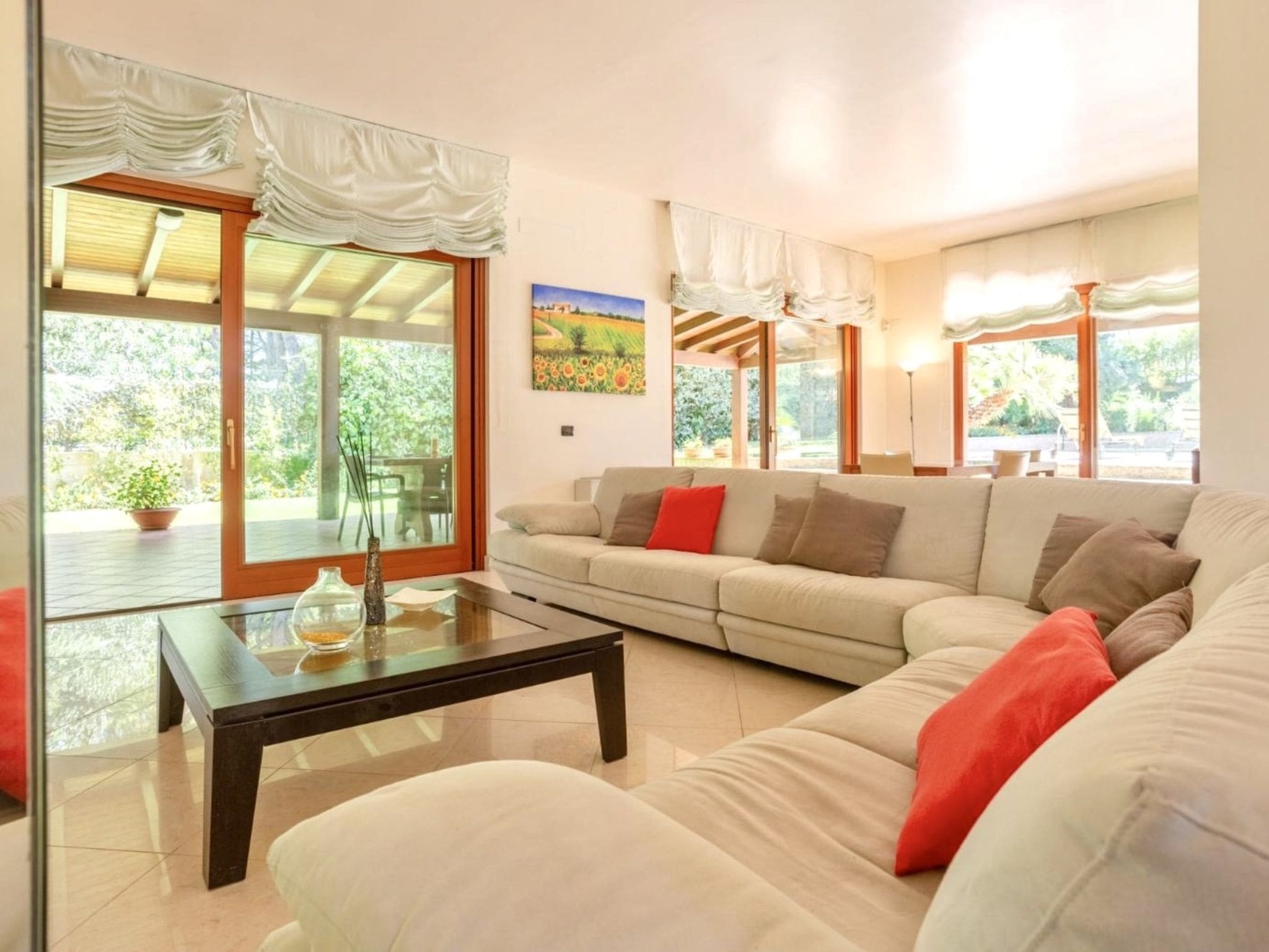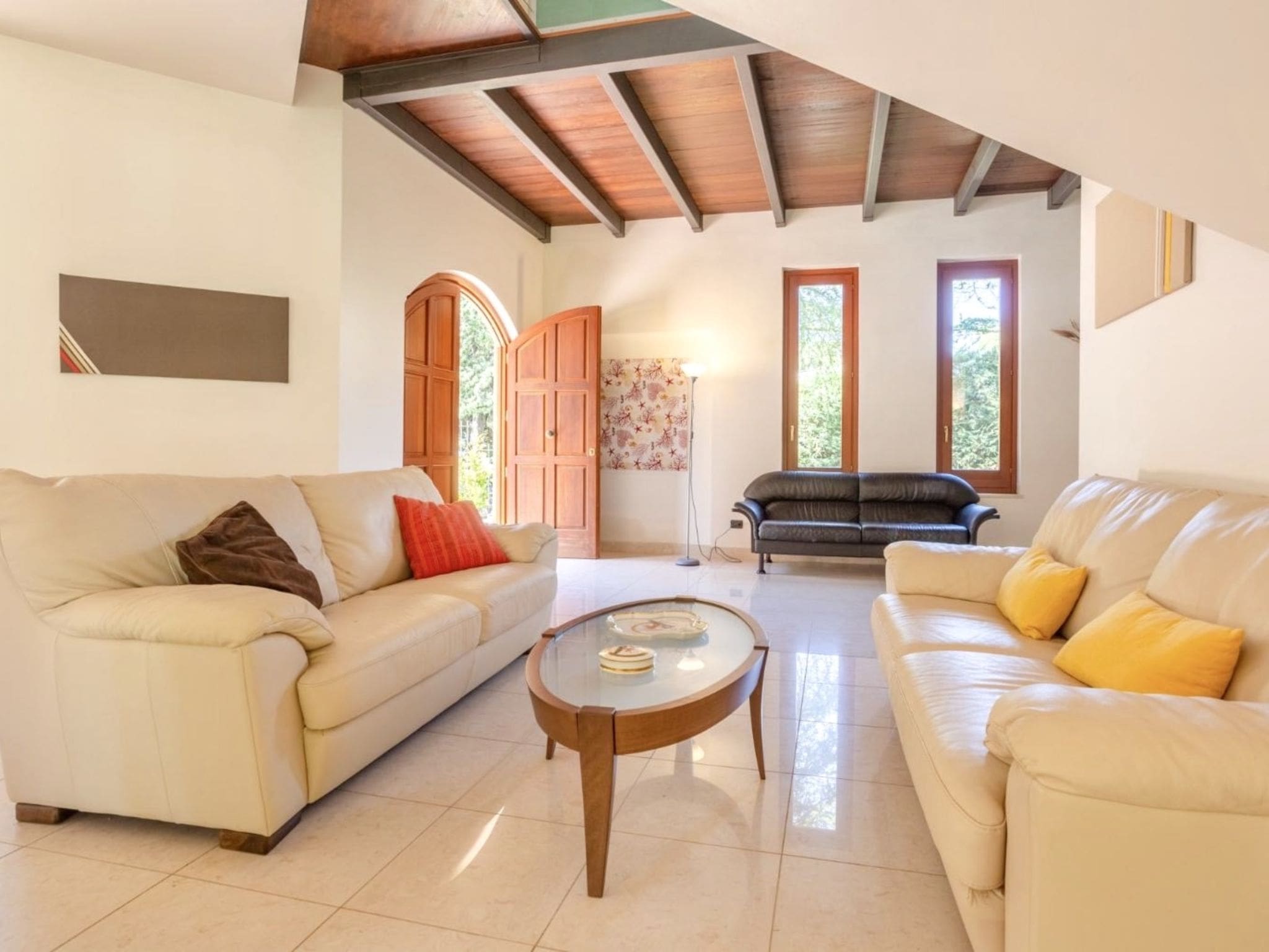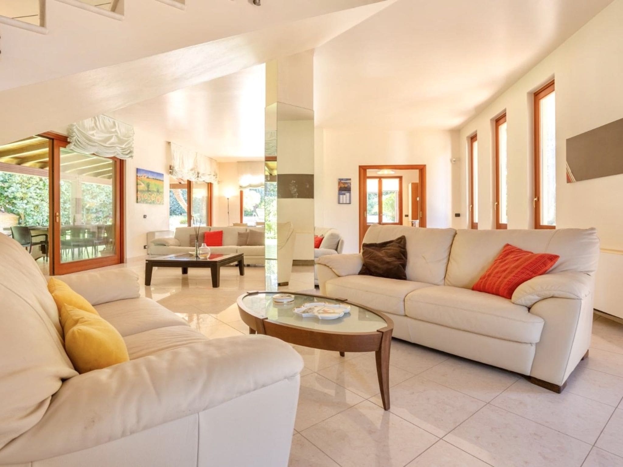Ascending to the upper floor reveals four beautifully appointed bedrooms, each featuring air conditioning and heating systems for year-round comfort. The master suite spans an impressive 50 square metres and includes a luxurious en-suite bathroom with both bath and shower, double basins, and direct access to a private balcony. Three additional bedrooms, including one with twin beds and another with gallery space featuring a double bed, ensure flexible accommodation for families and groups. Three pristine bathrooms throughout the villa feature modern fixtures including bidets, maintaining the high standards expected in luxury Italian accommodation.