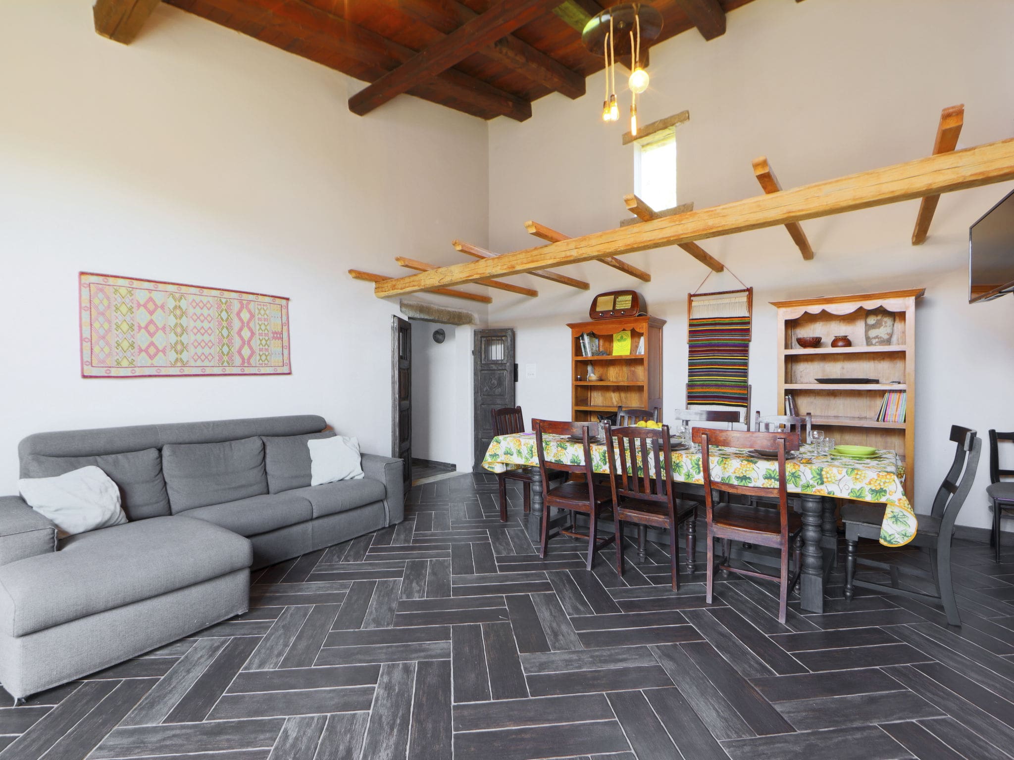 The spacious living room, furnished with tasteful Mediterranean pieces, centres around a dining table perfect for gathering family and friends. Satellite television provides entertainment, while large windows frame views of the surrounding countryside. The fully equipped kitchen features everything needed for culinary adventures, including a 6-burner gas range, oven, dishwasher, microwave, and electric coffee machine.