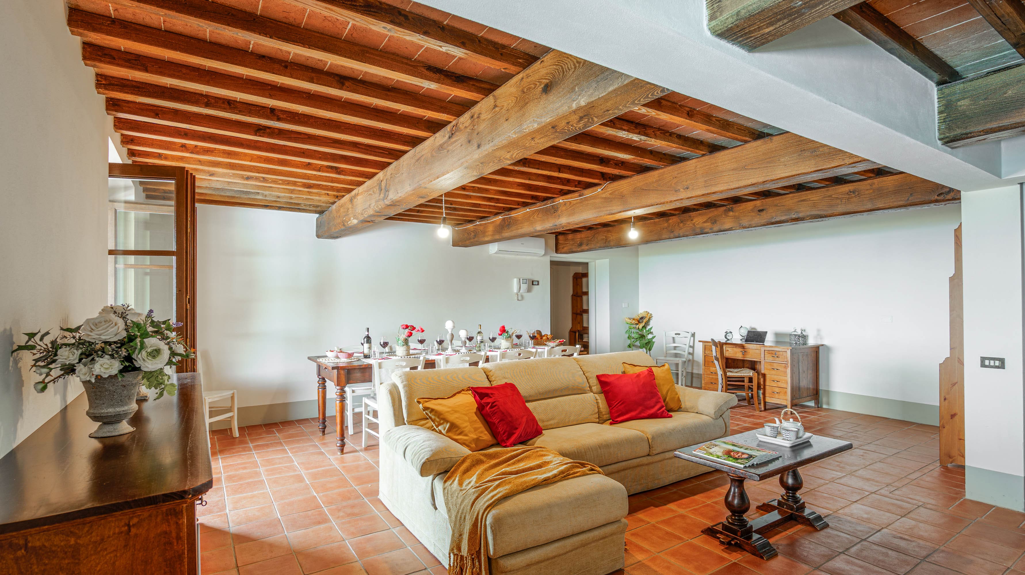 Step inside this luxurious villa and be greeted by a harmonious blend of traditional Tuscan charm and modern amenities. The spacious living areas are elegantly furnished, offering a warm and inviting atmosphere for relaxation. The fully equipped kitchen is perfect for culinary enthusiasts, while the dining area provides a delightful setting for memorable meals. The villa features four beautifully appointed bedrooms, each designed to ensure a restful night’s sleep. With three stylish bathrooms, including one not pictured but guaranteed to match the villa’s high standards, every detail has been considered for your comfort.