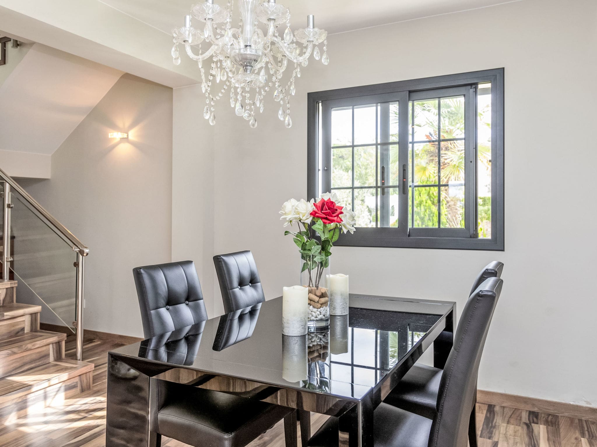 The villa maintains high environmental standards with LED lighting, water-efficient fixtures, recycling facilities, and sustainable practices throughout. Double-glazed windows ensure comfort while the covered terraces provide shade during the warmest months.