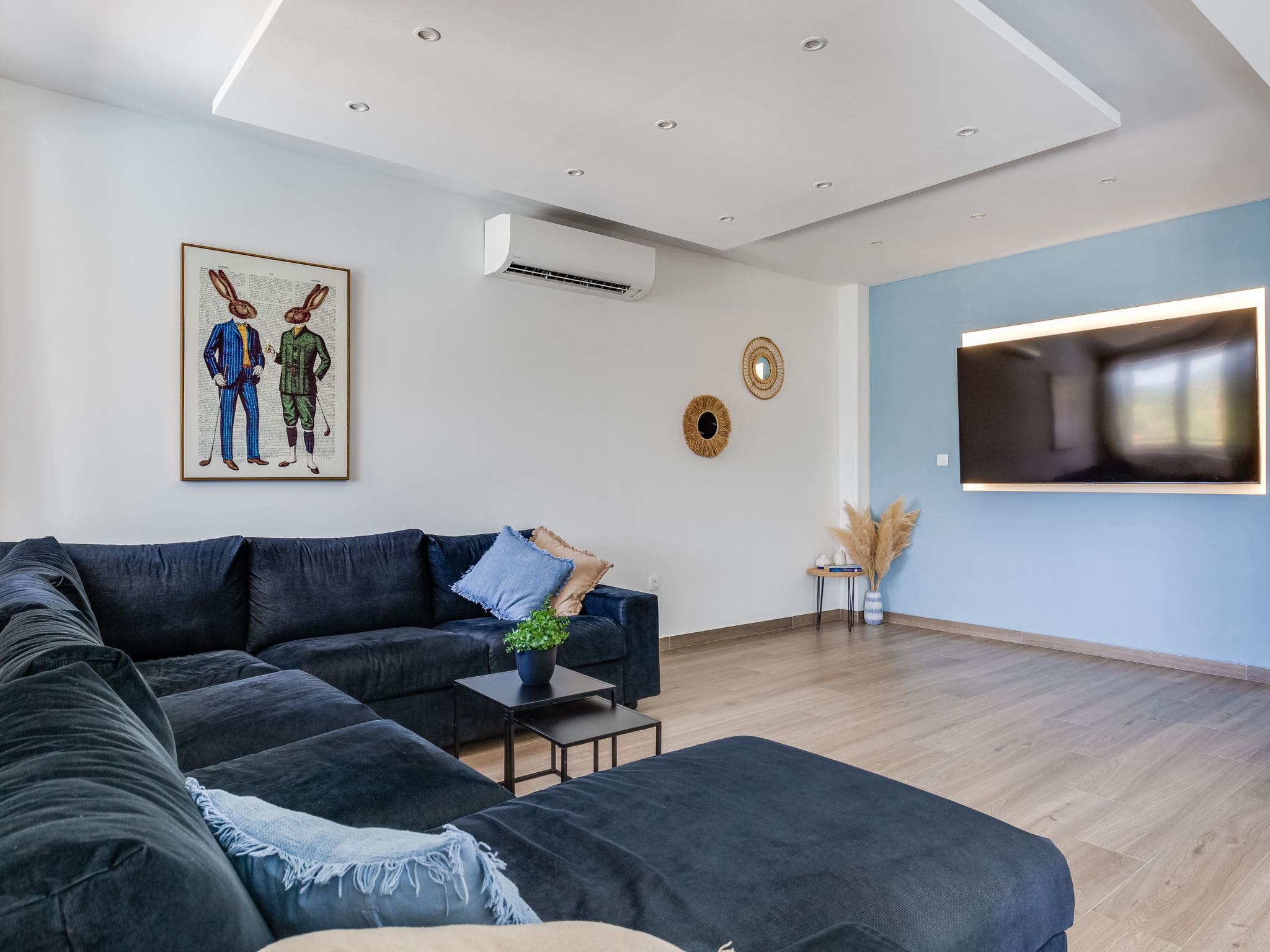 Spanning 150 square metres across two thoughtfully designed levels, this lakefront sanctuary accommodates up to 8 guests in exceptional comfort. The ground floor welcomes you with a spacious 45-square-metre living and dining area, featuring satellite television and air conditioning, with direct access to the expansive terrace. A well-appointed bedroom with twin beds offers ground-floor accommodation, while the open-plan kitchen comes fully equipped with modern appliances including dishwasher, ceramic hob, microwave, and electric coffee machine. The upper floor houses three elegant bedrooms, each featuring a king-size French bed, private ensuite bathroom with shower, satellite television, and individual air conditioning. Beautiful lake and pool views extend from the upper terrace, creating a serene backdrop for morning coffee or evening relaxation.