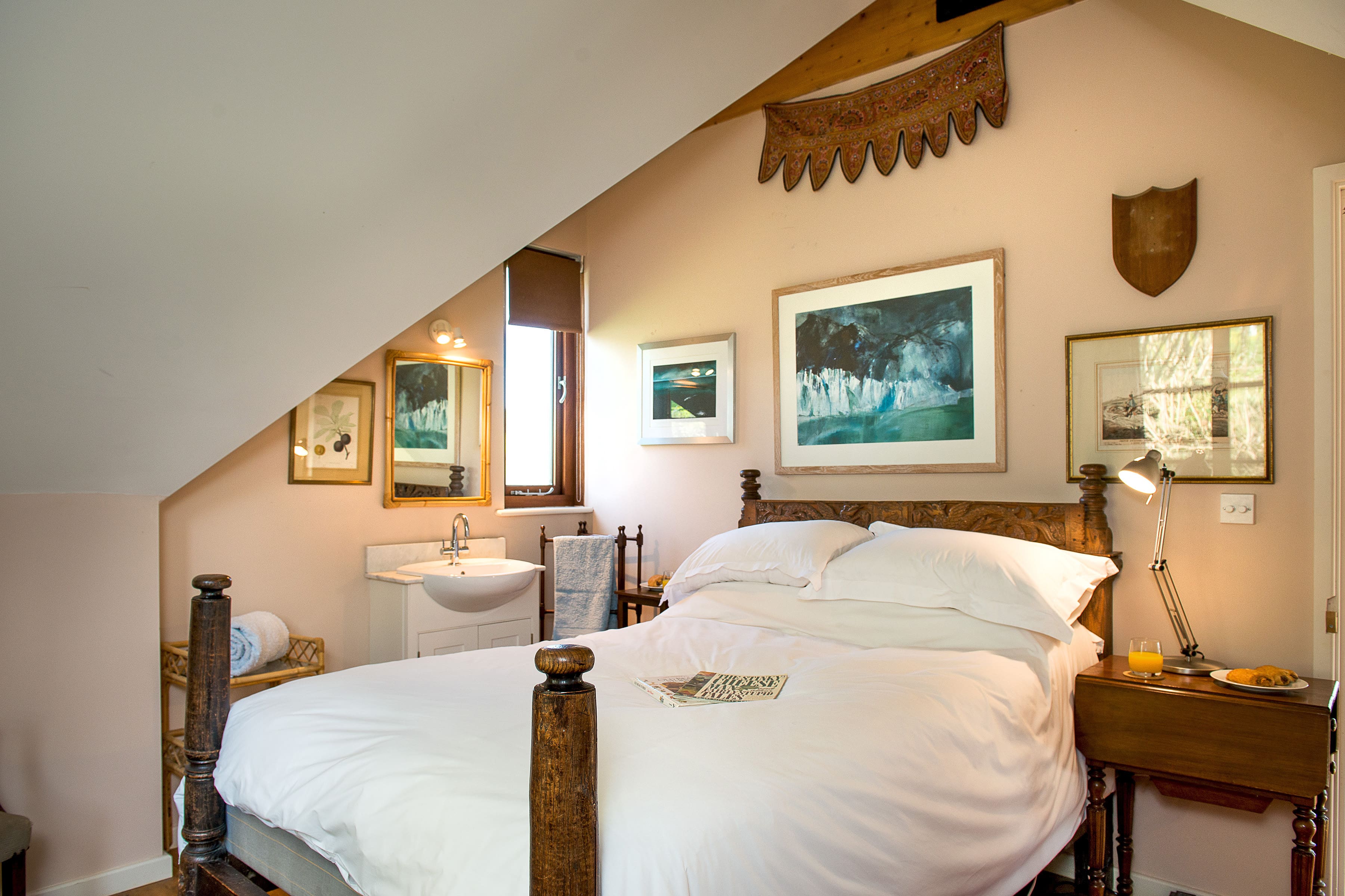 The interior of this luxury house in Devon beautifully balances classic features with modern amenities. With five elegantly appointed bedrooms, the main house accommodates up to seven guests, boasting a spacious living area perfect for gatherings. The garden rooms add a contemporary touch, offering two additional bedrooms that can comfortably host four guests. A glass-fronted mezzanine adjacent to one bedroom provides a versatile space, whether for an extra guest or as a serene office for remote working. While the maximum occupancy is ten, the property ensures ample space and comfort for all.