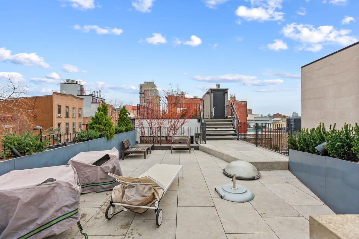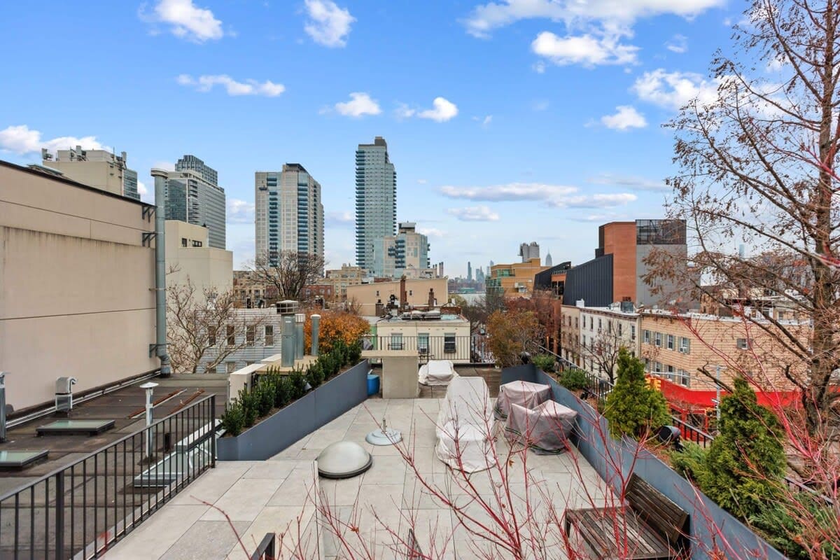 Experience the rare luxury of outdoor space in New York with a private courtyard and a rooftop terrace that provide a serene escape from city life. The rooftop offers stunning views of the Williamsburg skyline, perfect for sunset cocktails or morning yoga. The courtyard is an intimate space for al fresco dining, surrounded by lush greenery that enhances the sense of tranquility.
