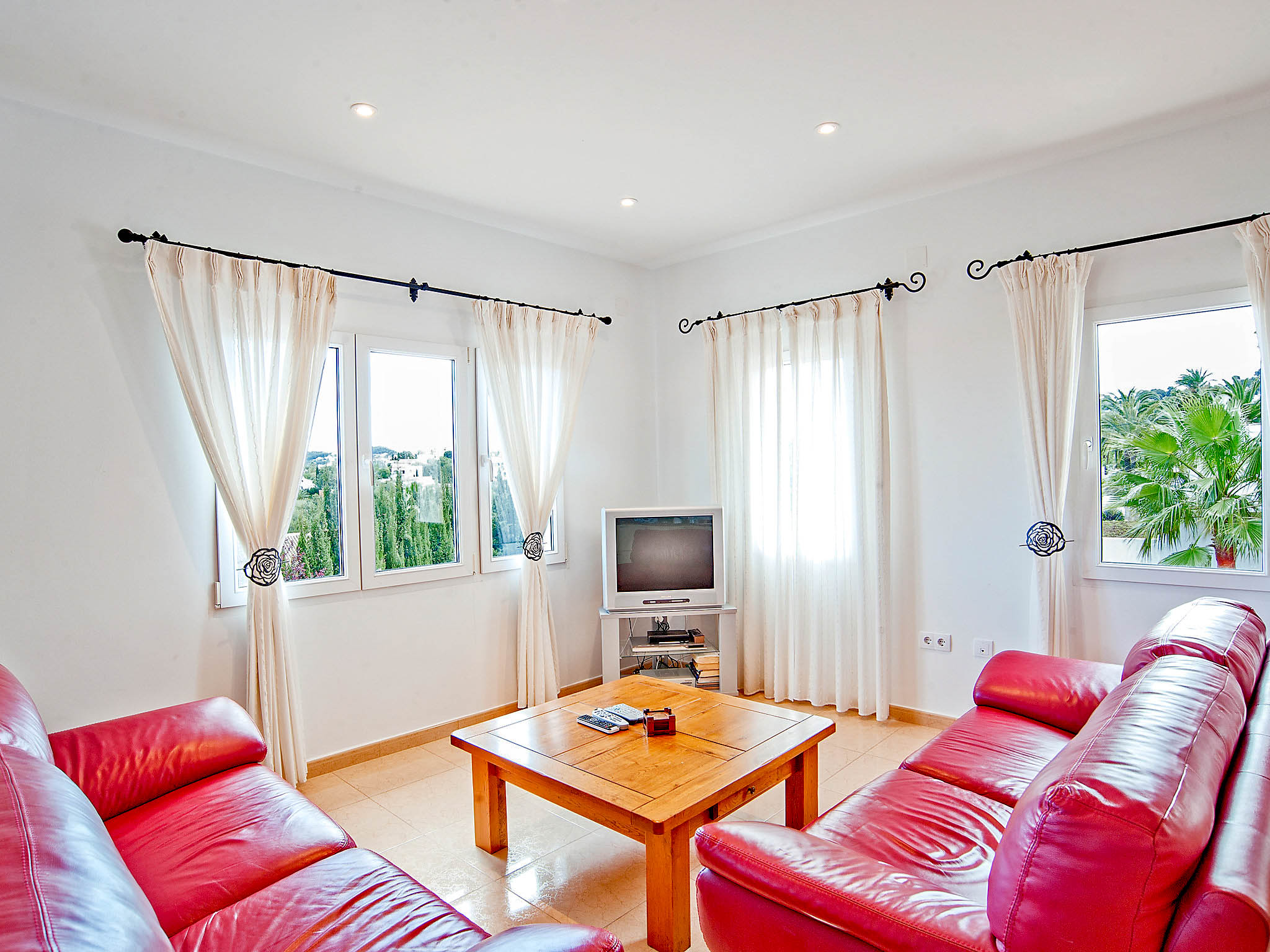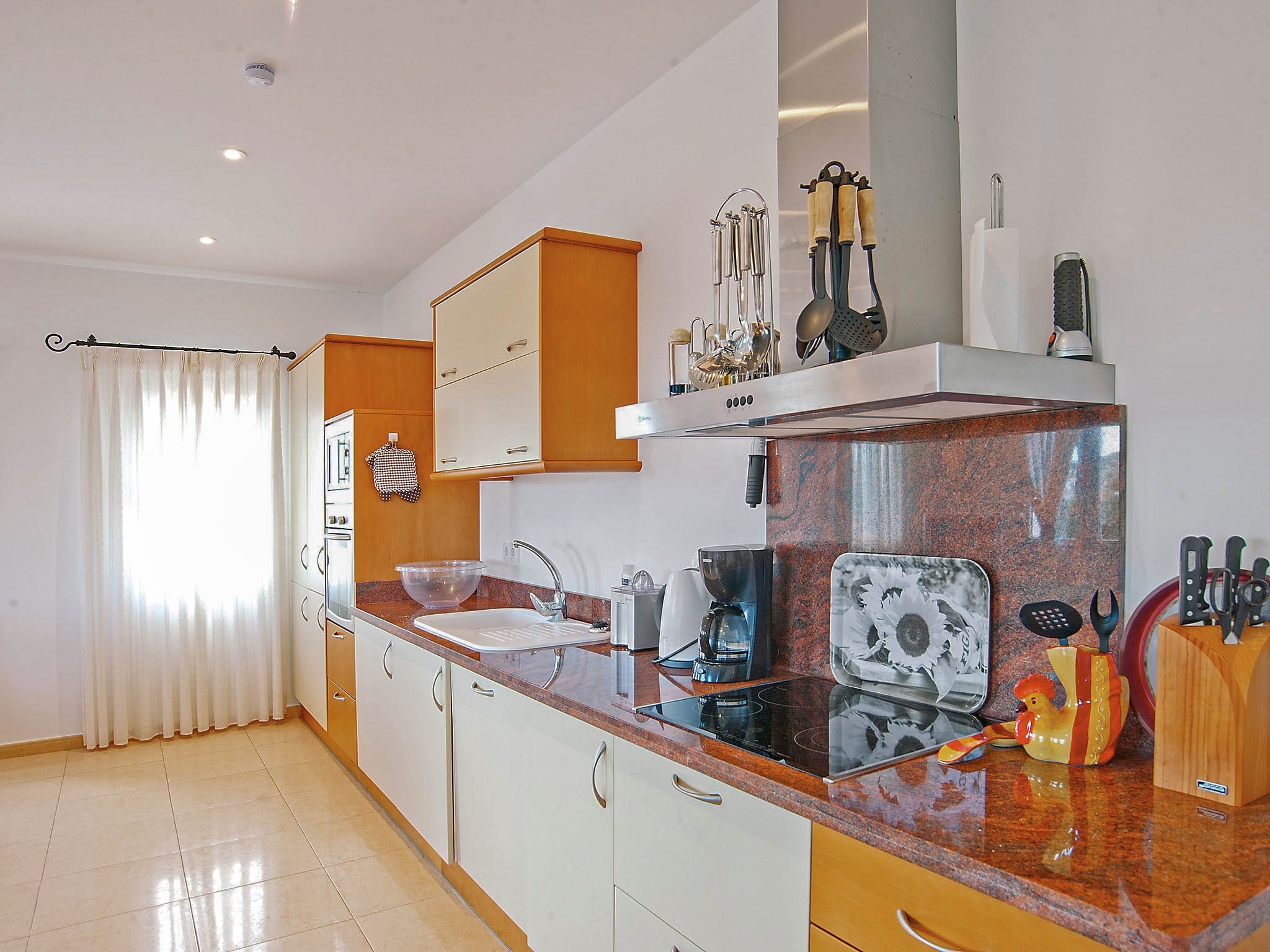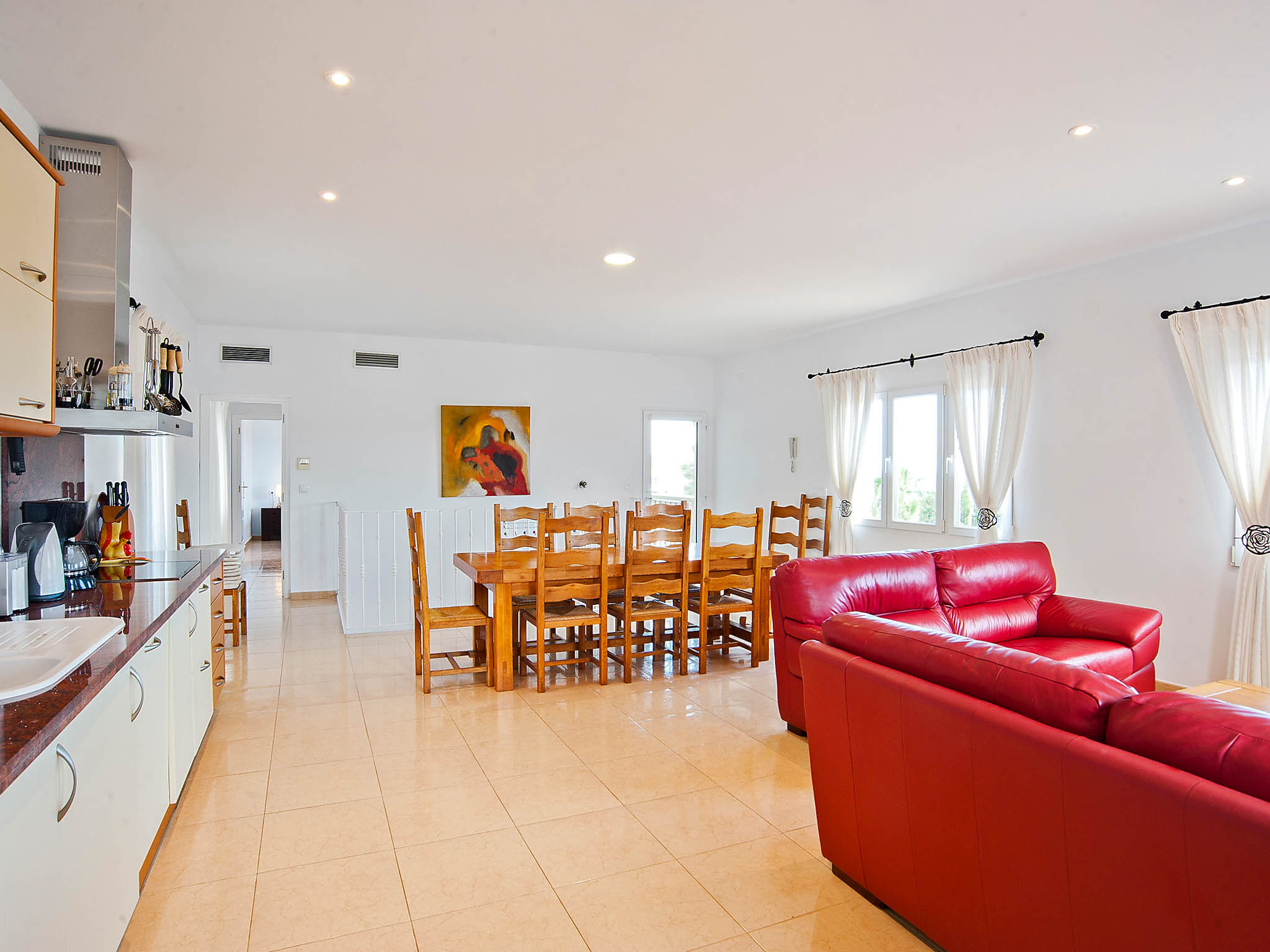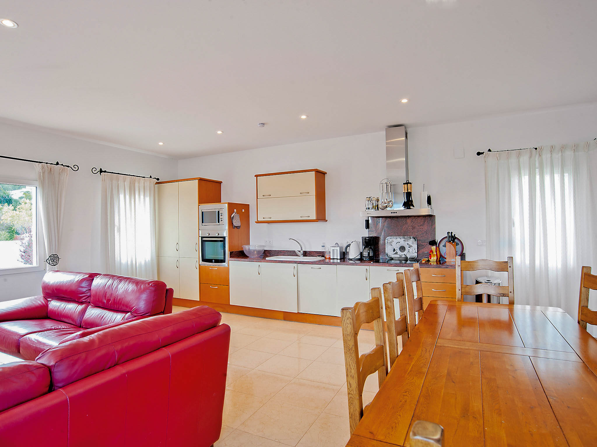 The kitchen is well equipped with a coffee machine, dishwasher, microwave and ceramic hot plates, and the villa also has three beautiful bathrooms. Two double bedrooms and a children’s room with twin beds make this the ideal property for a small to medium-sized family.