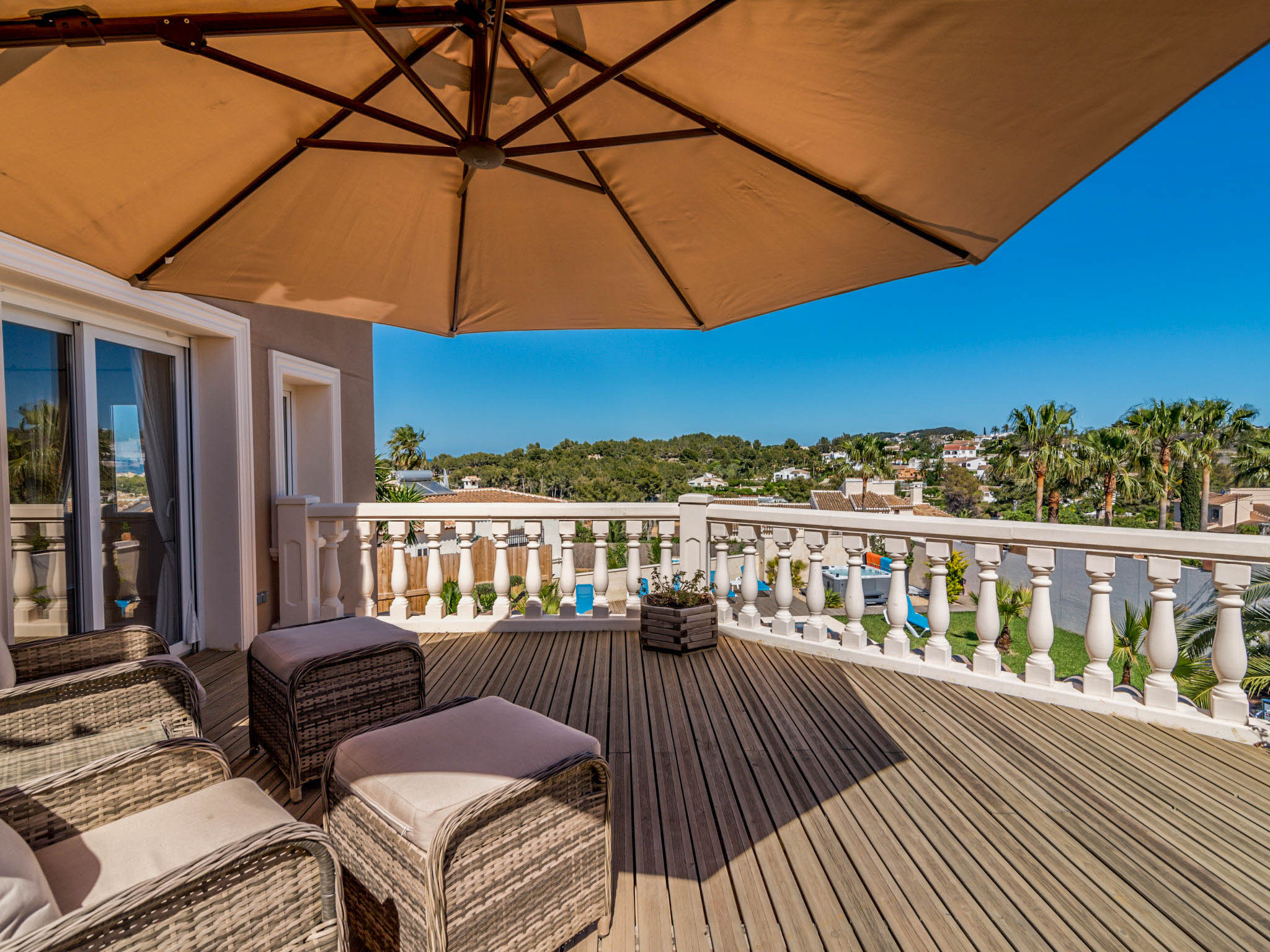 One of the highlights of this villa is its wonderfully spacious outdoor terrace. Set around the large pool, it offers excellent views of the sea and is the ideal place to sunbathe, sit or dine in the sunshine.