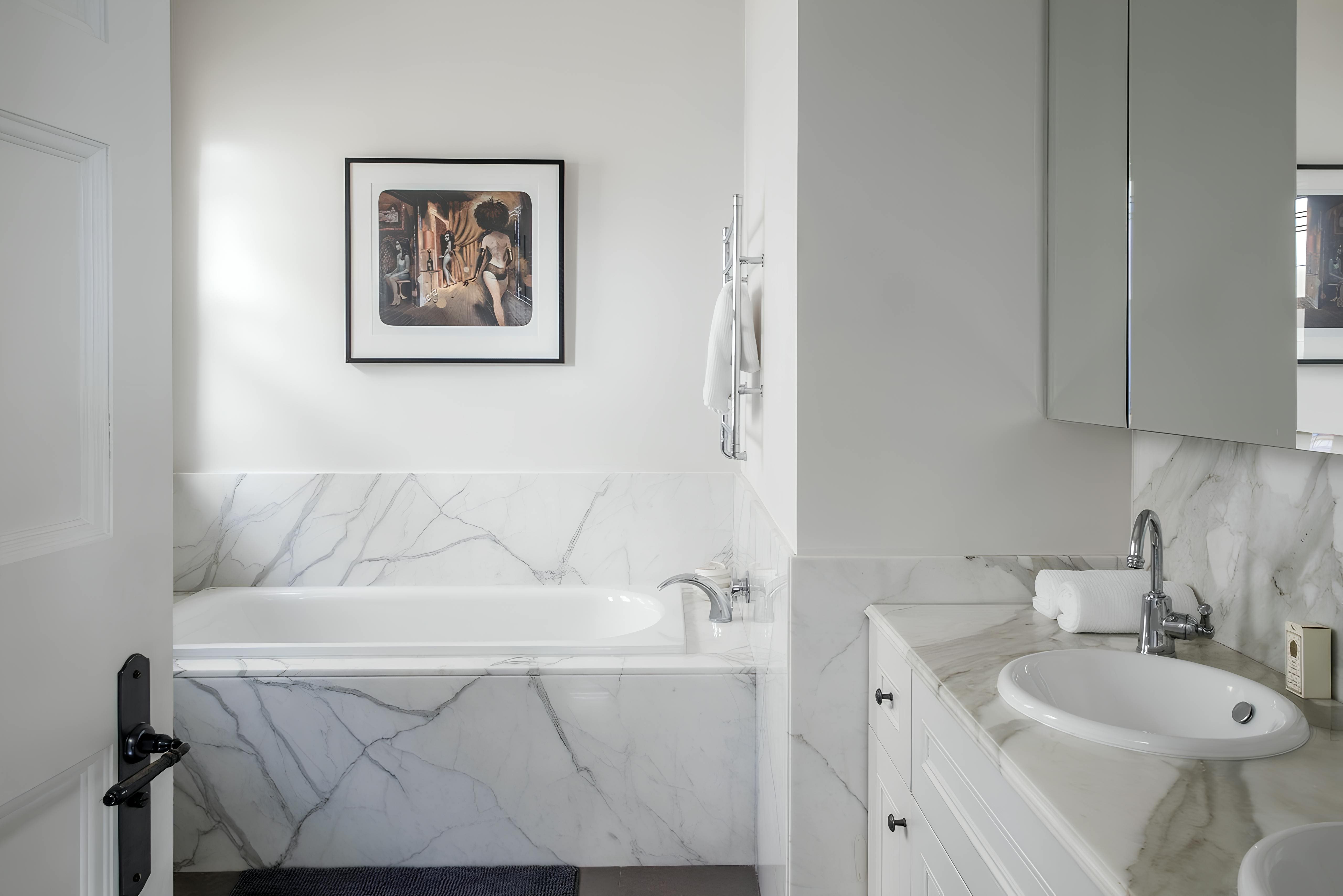 Step inside this opulent apartment, where sophisticated design meets modern luxury. The spacious interior features free-flowing living areas ideal for both relaxation and entertainment. The gourmet kitchen is equipped with state-of-the-art appliances, perfect for culinary enthusiasts. With five beautifully appointed bedrooms, including a charming children’s room with a single bed, and four luxurious bathrooms, this apartment ensures every guest enjoys a restful stay. Each bedroom offers a serene retreat, with one bedroom providing a unique layout with limited head height, adding character to the space.