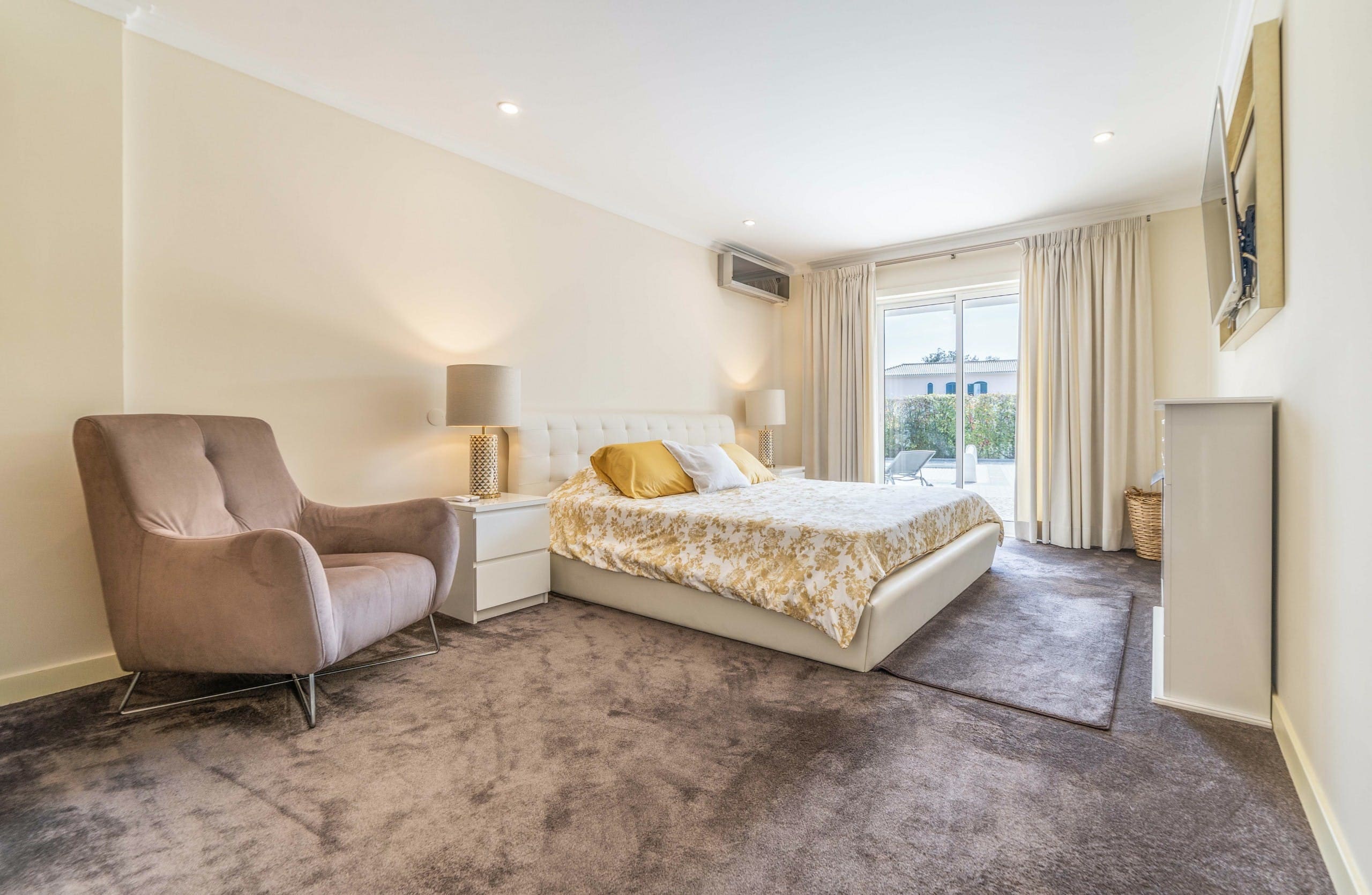 The villa features four bedrooms and four bathrooms, with free private parking for up to three cars. Due to its location, we recommend hiring a car to explore the surrounding area. The swimming pool is not fenced, so supervision is advised for young children. Browse our luxury villa rentals in Portugal for more properties.