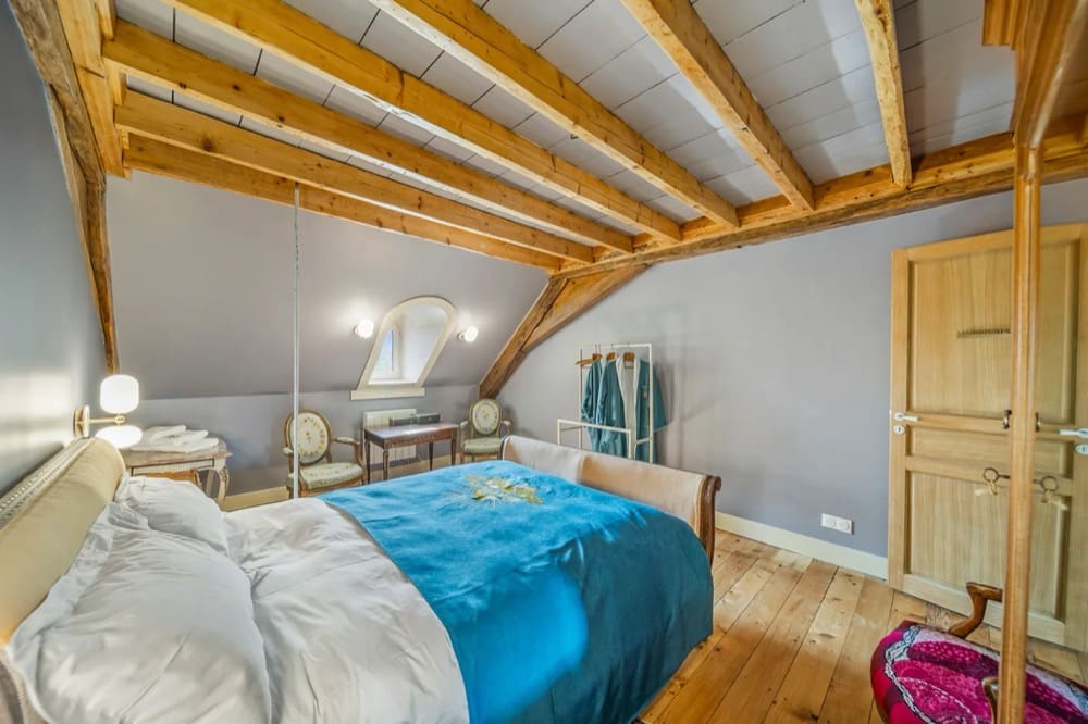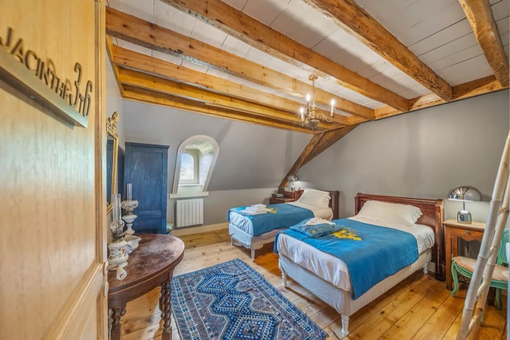 With 15 beautifully appointed bedrooms accommodating up to 25 guests, this château is the ultimate choice for luxurious group holidays, milestone celebrations, or sophisticated retreats. The first floor features seven elegant bedrooms, most with private en suite facilities, while the top floor offers eight more bedrooms, many tucked beneath charming eaves and served by a modern shared bathroom with four showers and multiple sinks.