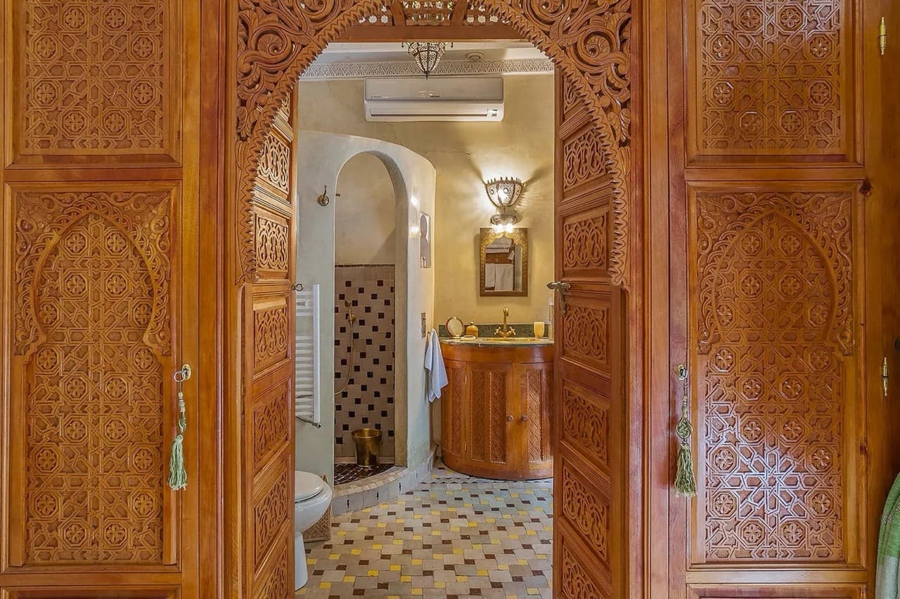 Escape into the refined world of Riad Hammam Medina, an exquisite seven bedroom luxury riad positioned at the heart of Marrakech’s legendary Medina. Crafted with glistening marble, hand carved wood and shimmering tadelakt, this splendid residence blends traditional Moroccan artistry with elegant Syrian influences. The riad unfolds around a peaceful courtyard where a softly murmuring fountain sets a serene rhythm, while each en suite bedroom offers air conditioning, exquisite fabrics, sculpted stucco and an atmosphere of timeless Arabian grandeur.