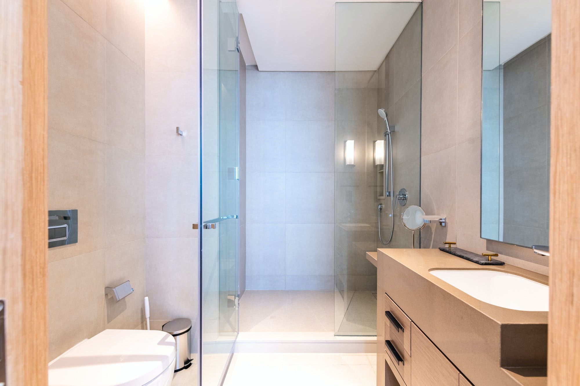 Guests can indulge in the world’s tallest infinity pool, offering breathtaking views of the Arabian Gulf. A hot tub and direct access to the golden sands of the nearby beach enhance the outdoor experience. Outdoor dining areas provide the perfect setting for al fresco meals under the stars, with the Dubai skyline as a backdrop.