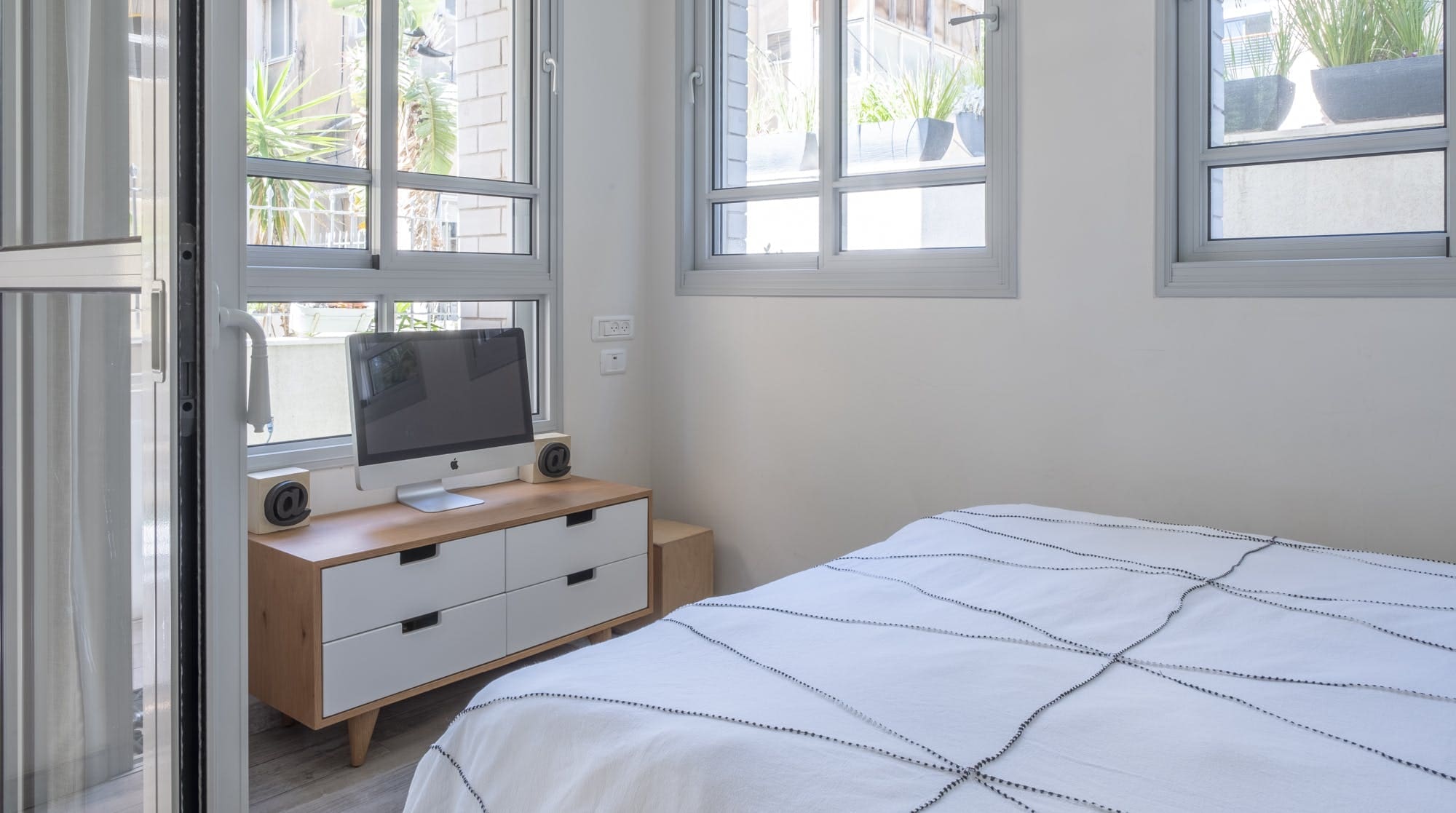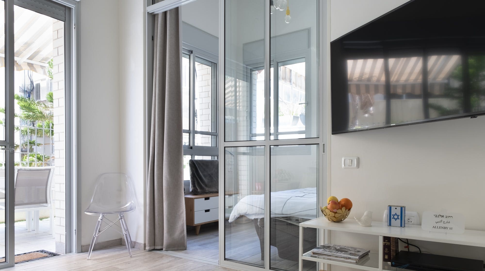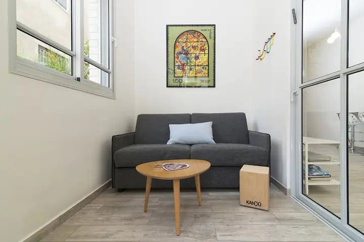 Accommodating up to six guests, the apartment features two bedrooms and one bathroom. While centrally located, guests should note that some noise is to be expected. The second bedroom is bright but not entirely private, separated by a window from the communal areas. Pets and children are welcome, making it an ideal choice for family vacations. Browse our luxury villa rentals in Israel for more properties.