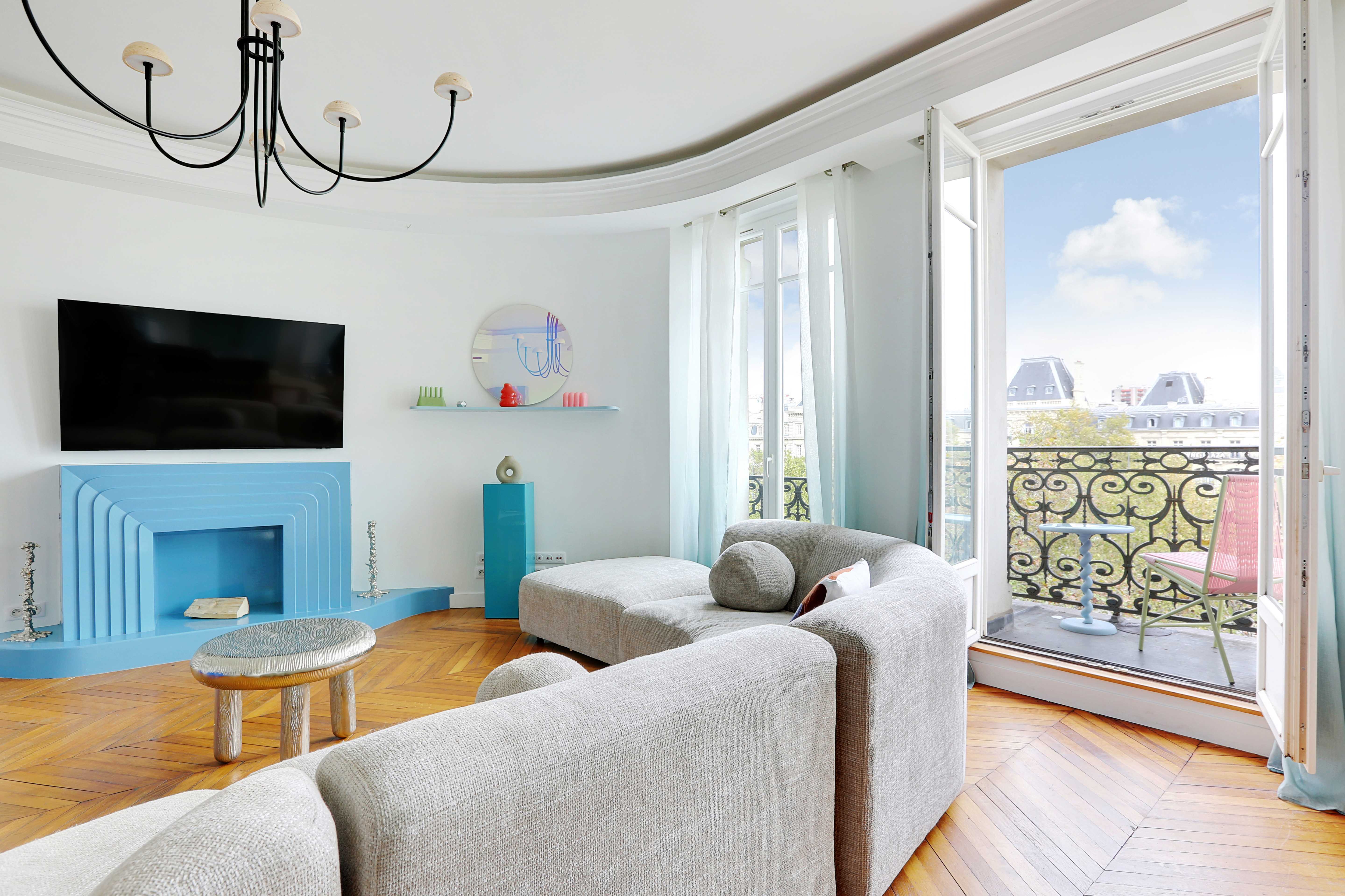 A small balcony off the living area presents stunning city views, perfect for enjoying a morning coffee or sipping cocktails as the sun sets over the rooftops of Paris. The apartment’s central location means that while you can enjoy the sights and sounds of the city, you may also hear some street noise, adding to the vibrant Parisian experience.