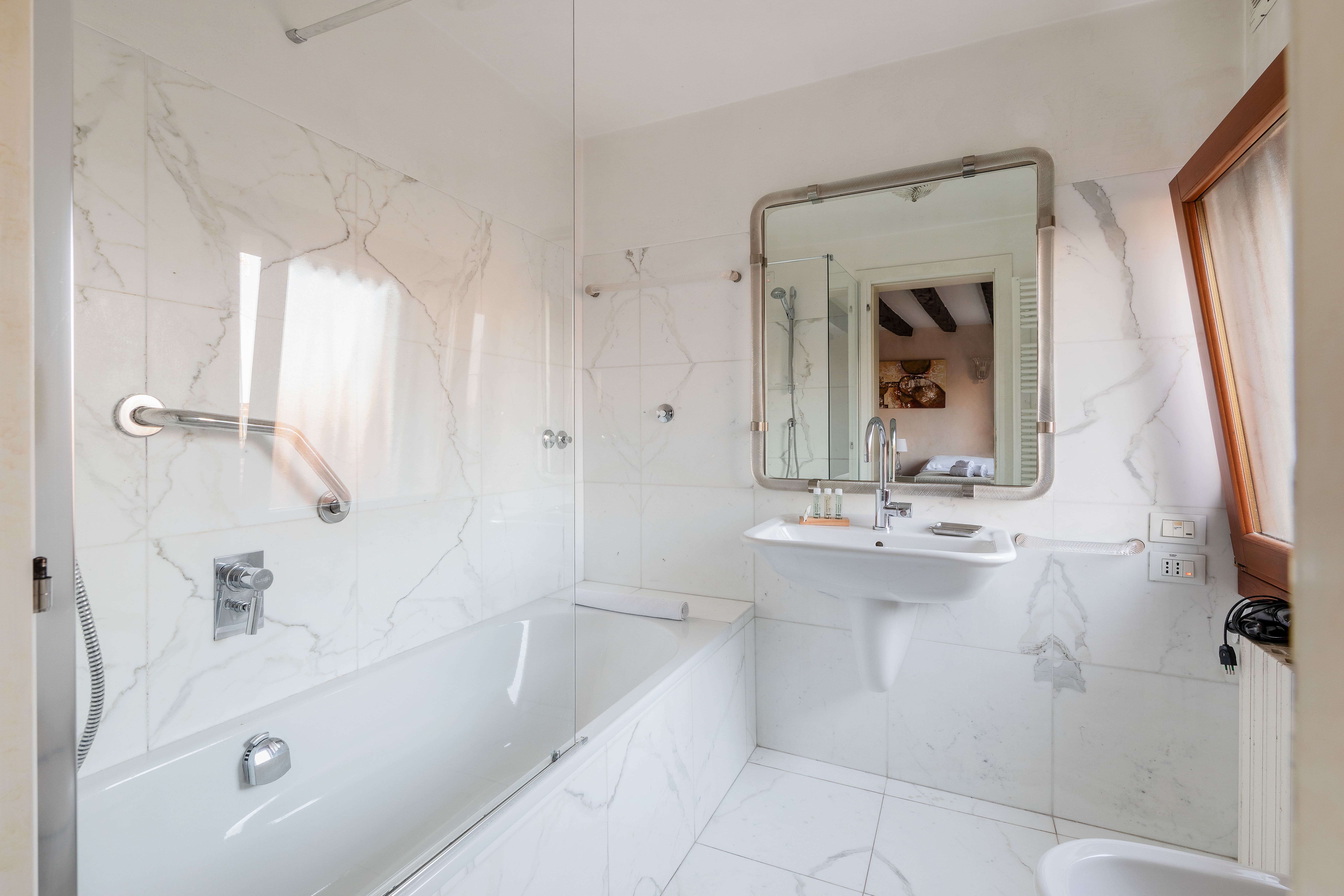 One of the standout features of this apartment is the exclusive rooftop terrace, where you can unwind while soaking in panoramic views of Venice’s stunning skyline. Enjoy al fresco dining with a backdrop of historic landmarks or sip on Prosecco as the sun sets over the city. With ample outdoor seating, the terraces provide the perfect setting for morning coffee or evening gatherings under the stars.