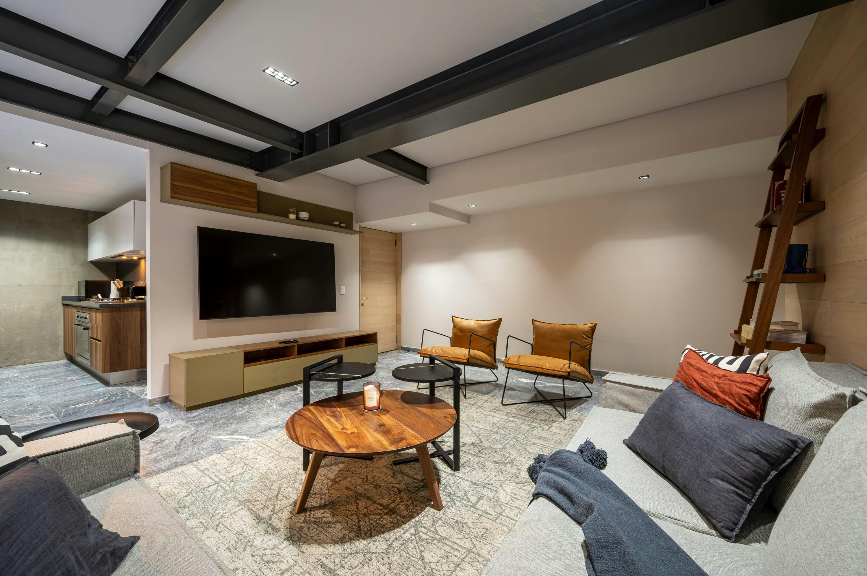 Step into a world of minimalist elegance where every detail is designed for comfort and style. The interior features two spacious bedrooms adorned with crisp linens and modern decor, ensuring a restful retreat. The open-plan living area is perfect for unwinding, while the sleek kitchen is equipped with top-of-the-line appliances for culinary enthusiasts. Although the lighting is understated, the clean lines and neutral tones create a calming ambiance, ideal for families and couples alike.