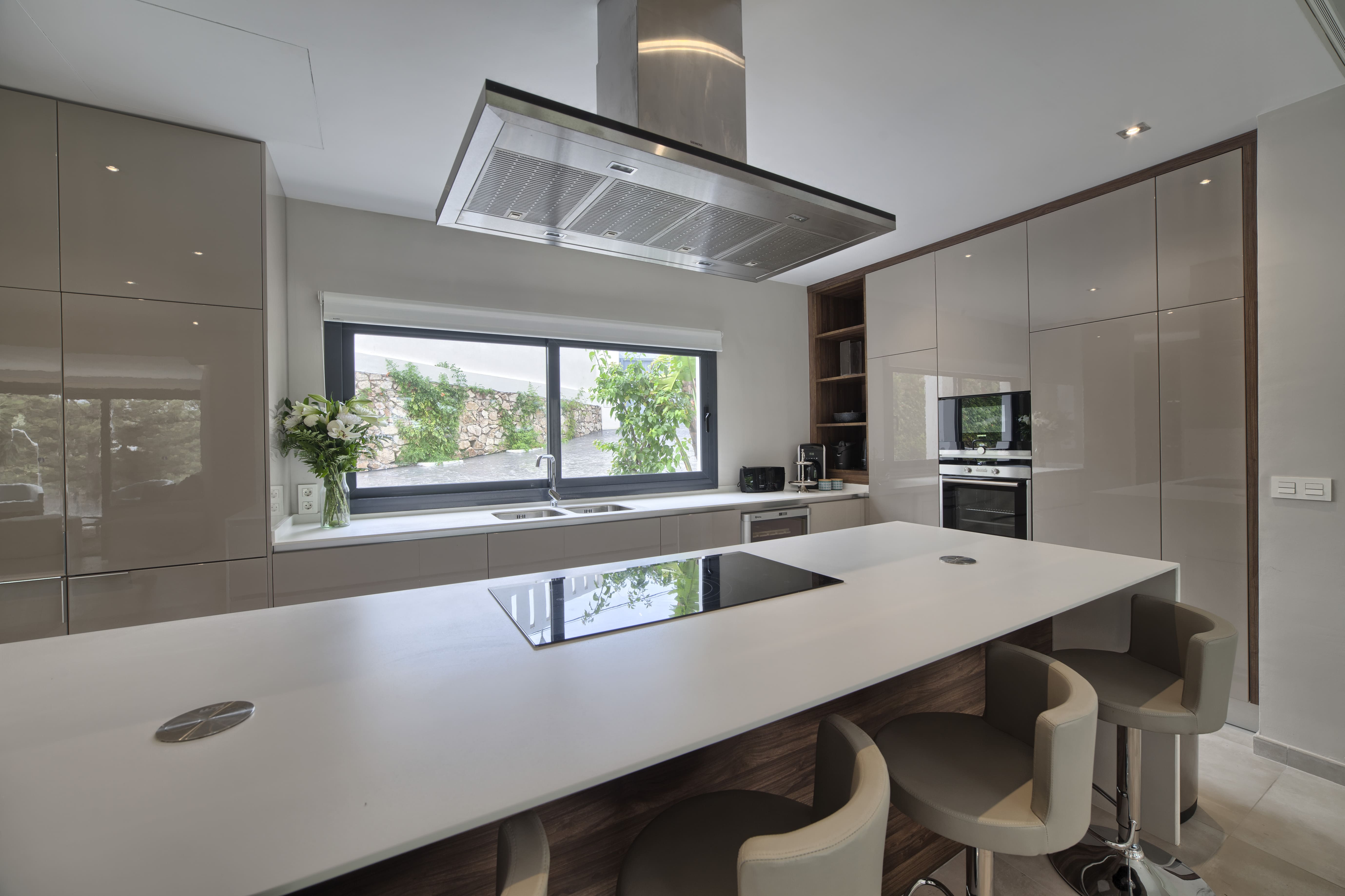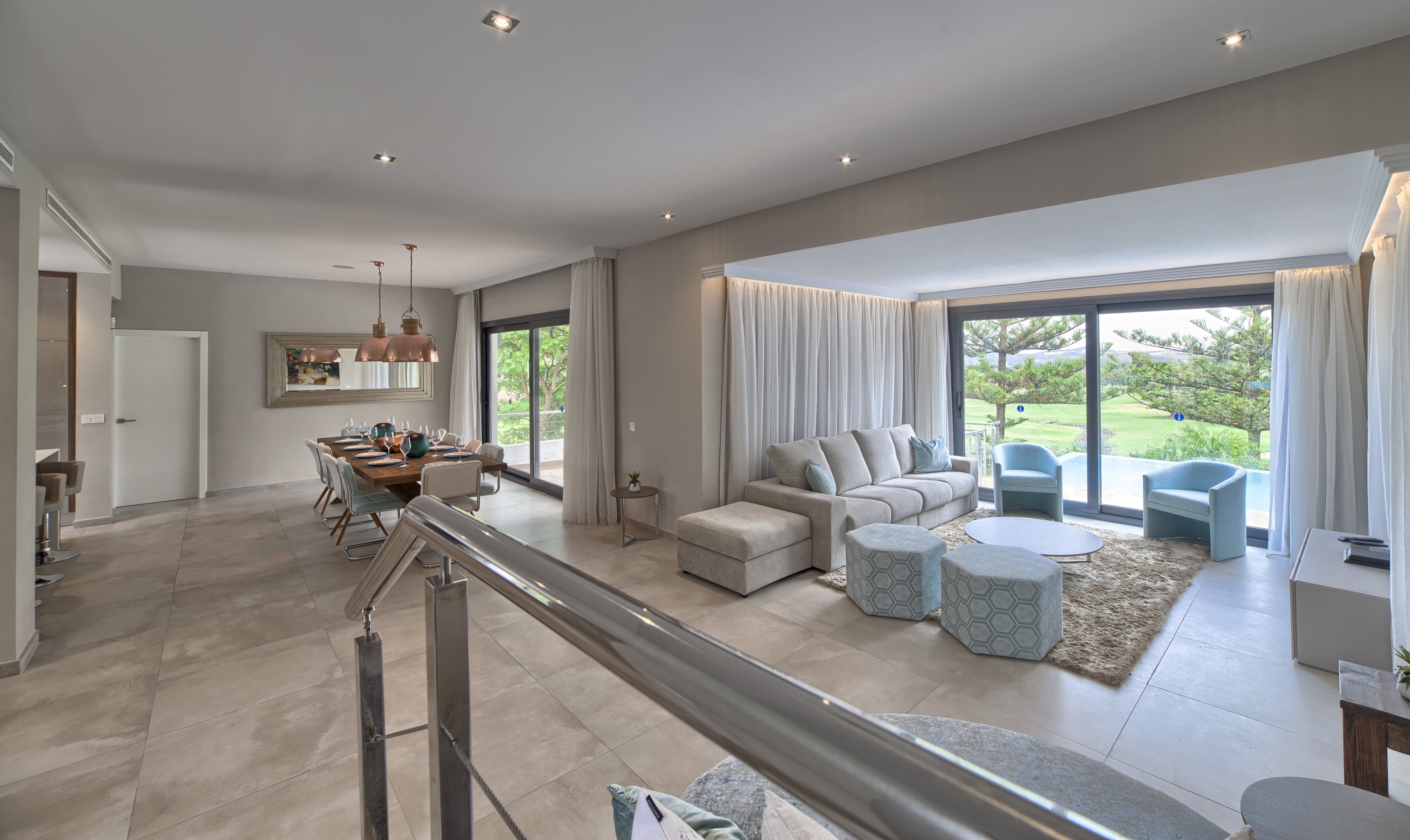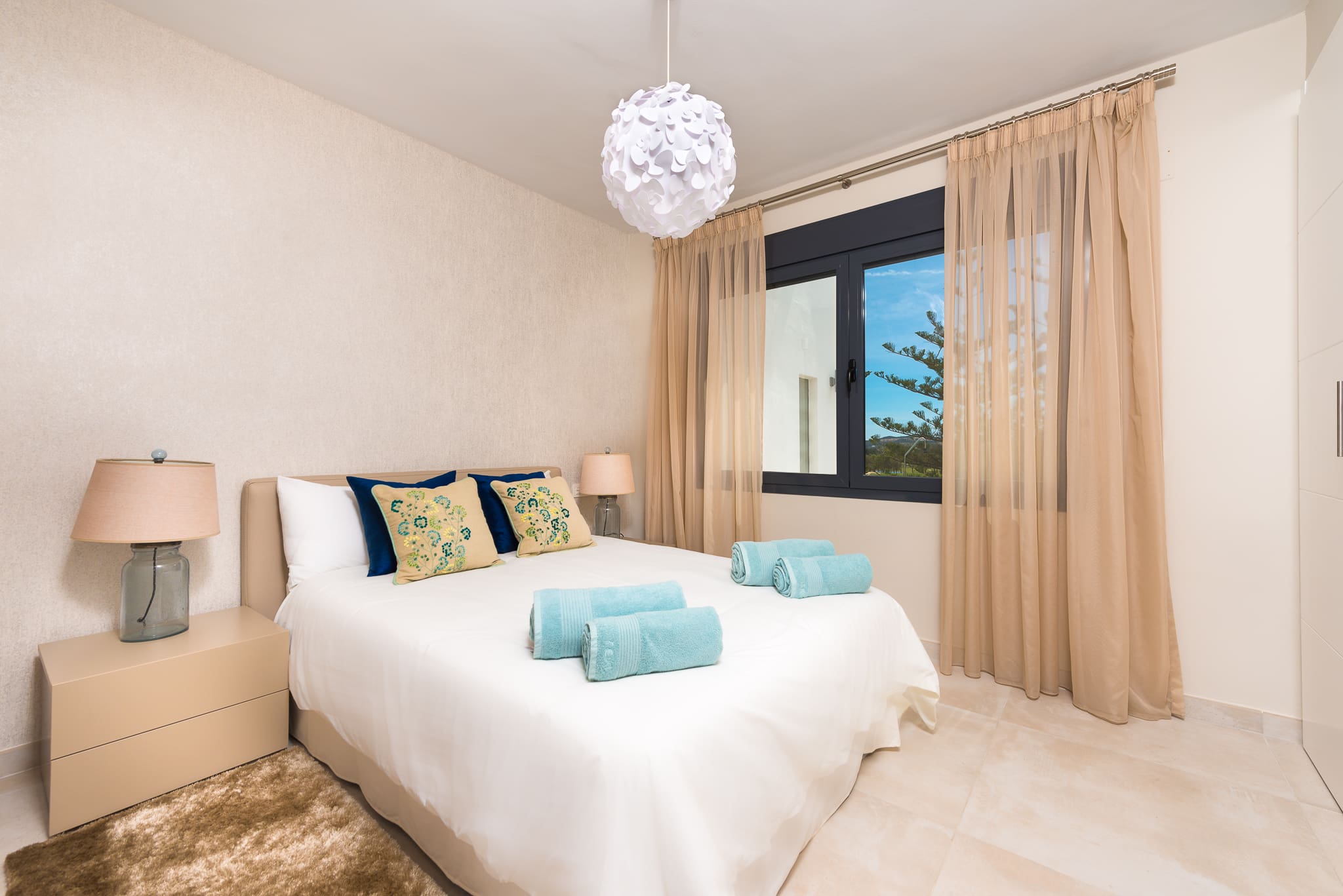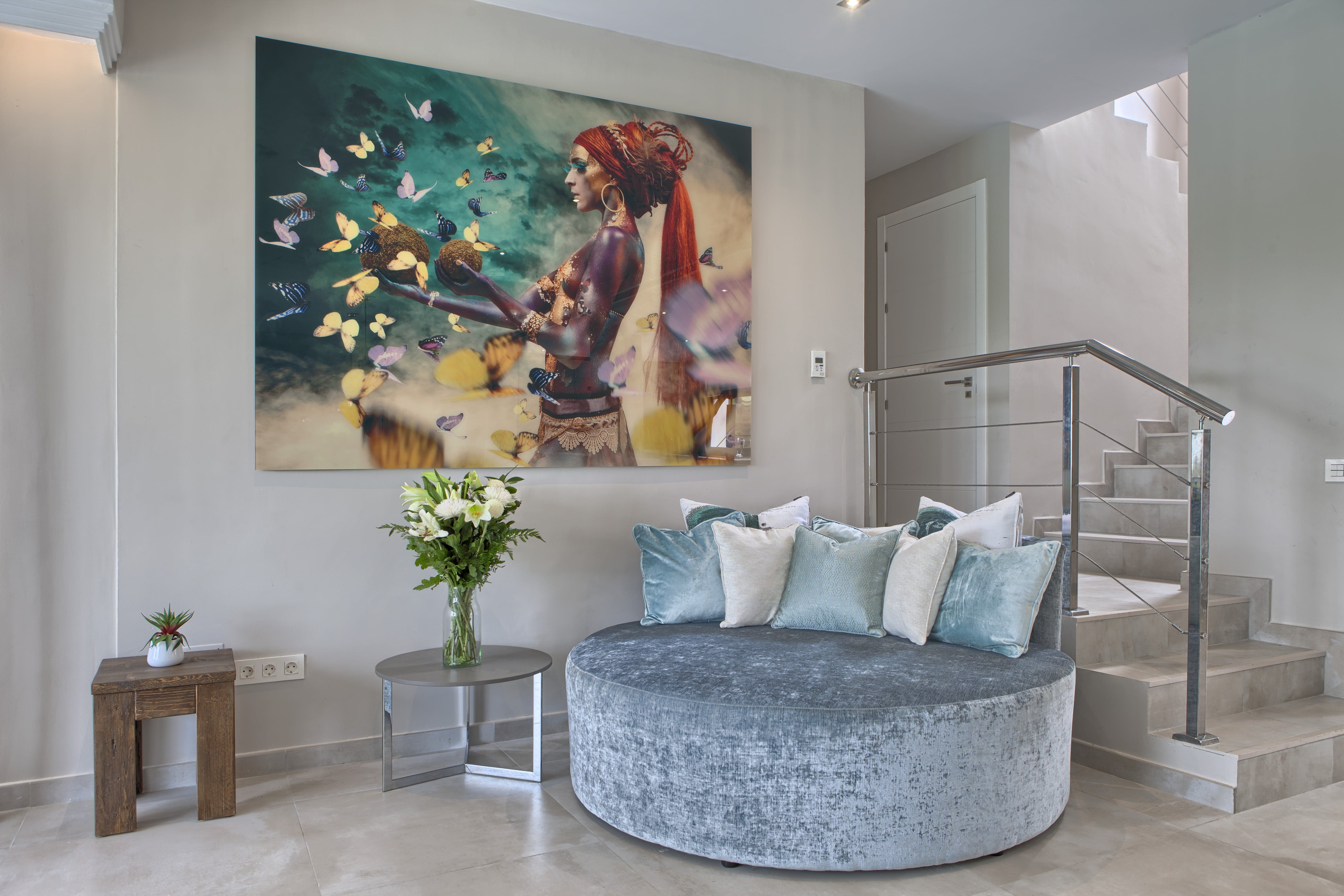 The interior of Casa Almijara Fuengirola is a masterpiece of modern design and comfort. With six beautifully appointed bedrooms and five elegant bathrooms, this apartment accommodates up to 11 guests in style. The spacious living areas offer a perfect blend of relaxation and entertainment, featuring plush furnishings and contemporary decor. The state-of-the-art kitchen is a culinary enthusiast’s dream, equipped with high-end appliances and ample space for gourmet cooking.