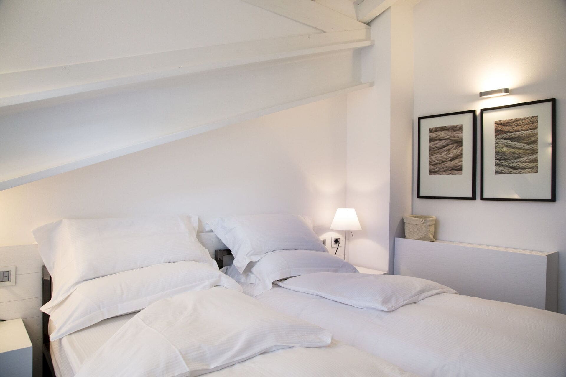 The apartment accommodates up to six guests, with two bedrooms and an additional sofa bed in the living area. Complimentary toiletries are provided for your convenience, and private parking is available in the garage. For more options, browse our luxury villa rentals in Italy.