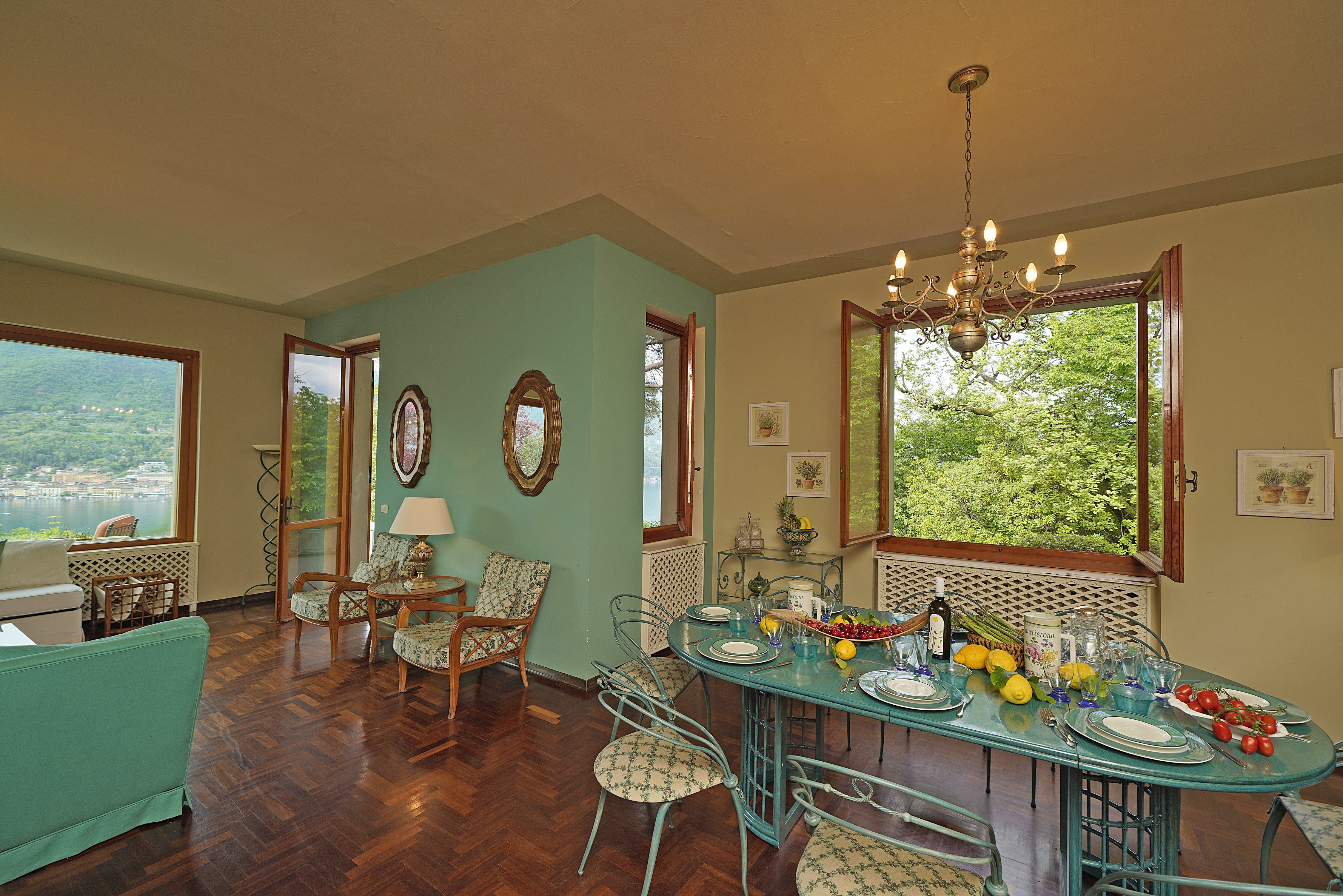 The interior of this Verona apartment is thoughtfully designed to accommodate up to 10 guests in style. The living areas exude warmth and comfort, featuring traditional decor that adds a touch of Italian heritage. Two interconnected apartments ensure both privacy and togetherness, complete with a well-equipped kitchen, open-plan dining area, and cozy living room. Five inviting bedrooms and four bathrooms provide restful sanctuaries, with a ground-floor room catering to those with reduced mobility.