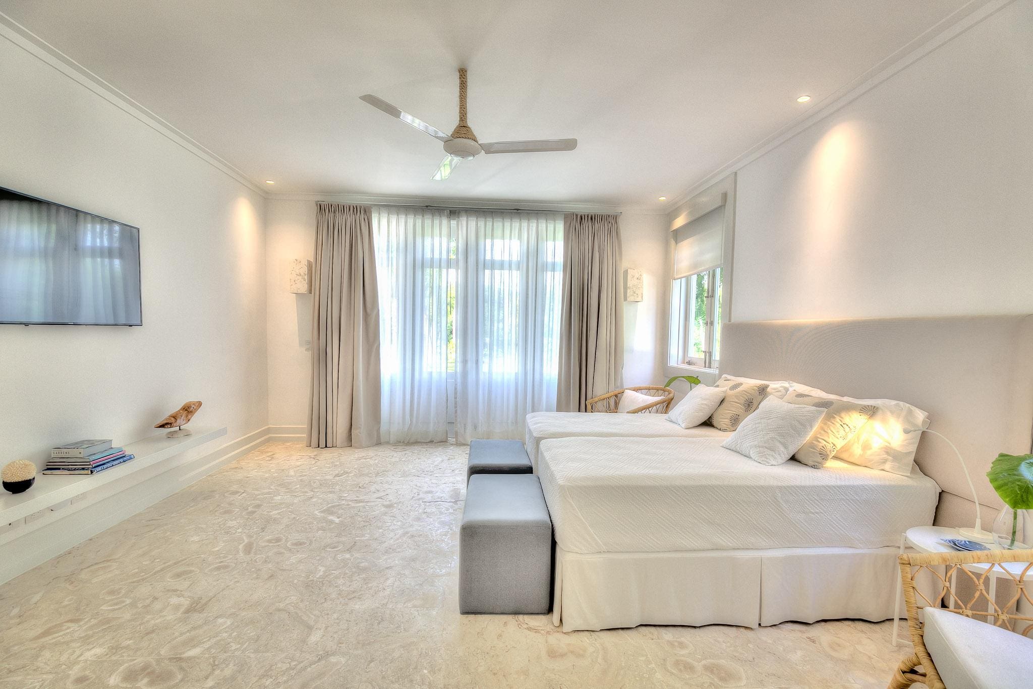 With a capacity for 16 guests, the apartment features six bedrooms and bathrooms, ensuring ample space and privacy. The dining table serves as a laptop-friendly workspace, perfect for remote work. Included services such as a housekeeper, waiter, and chef enhance the luxury experience. Browse our luxury villa rentals in Dominican Republic for more properties.
