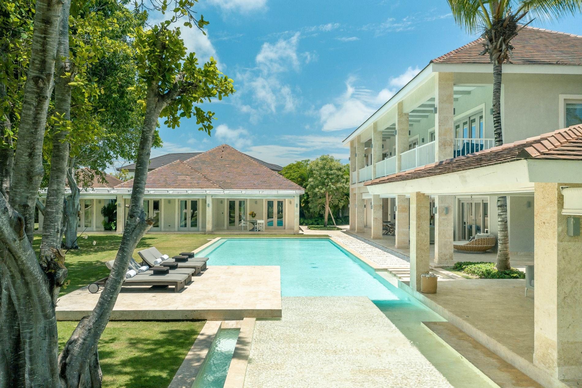 This luxurious apartment accommodates up to 14 guests with six bedrooms and six bathrooms. The property includes private parking and offers easy access to local amenities. A maid service, butler service, and private chef are included, ensuring a seamless stay. Note that at least one member of the staff will be staying 24 hours at the villa. Browse our luxury villa rentals in Dominican Republic for more properties.