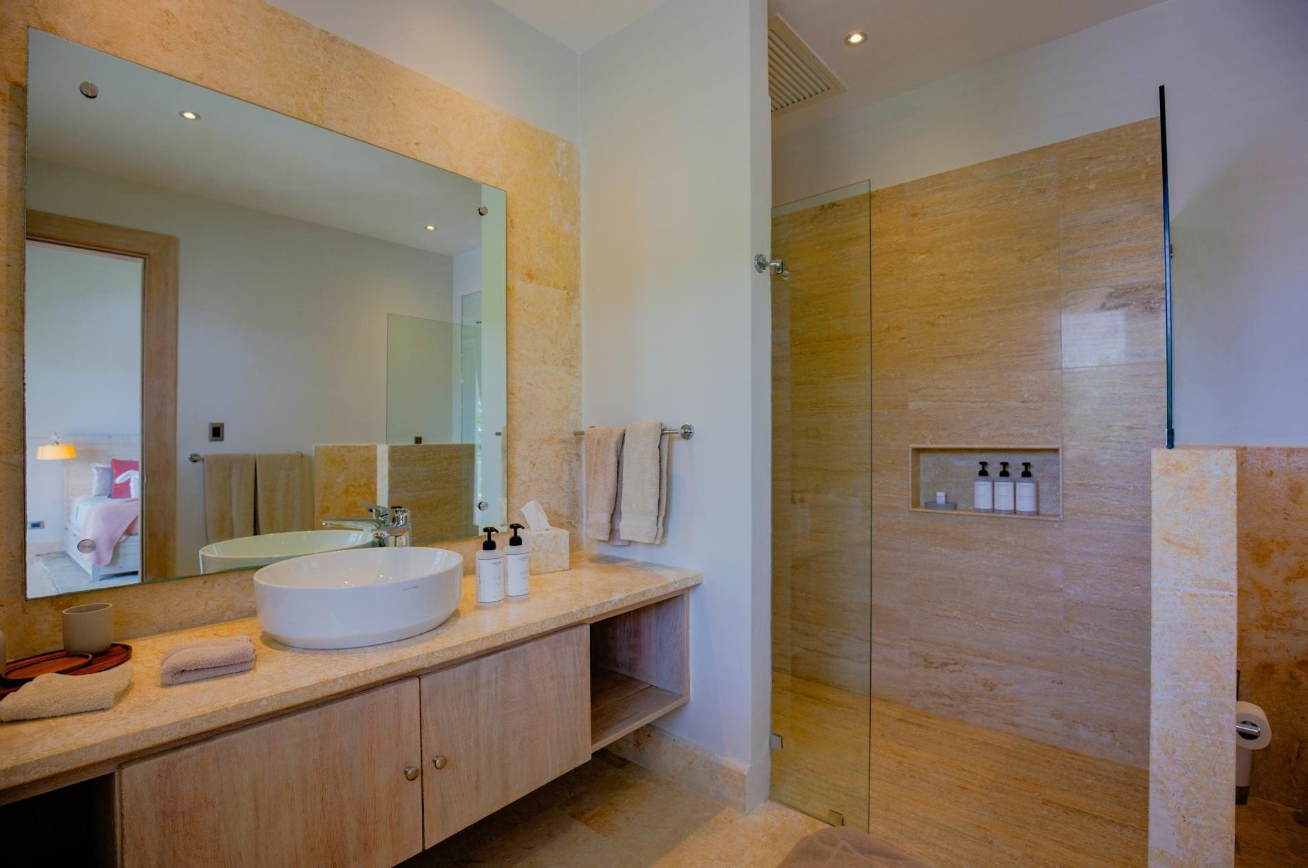 Step inside this beautifully designed luxury apartment rental in the Dominican Republic, where every detail reflects sophistication and comfort. The interior boasts six elegantly furnished bedrooms, each with its own en-suite bathroom, ensuring privacy and convenience for all guests. The spacious living areas are perfect for relaxation, featuring plush seating and state-of-the-art entertainment systems. A fully equipped kitchen awaits culinary enthusiasts, complete with modern appliances and ample counter space. Whether you’re enjoying a quiet evening indoors or hosting a gathering, this apartment offers the ideal setting.