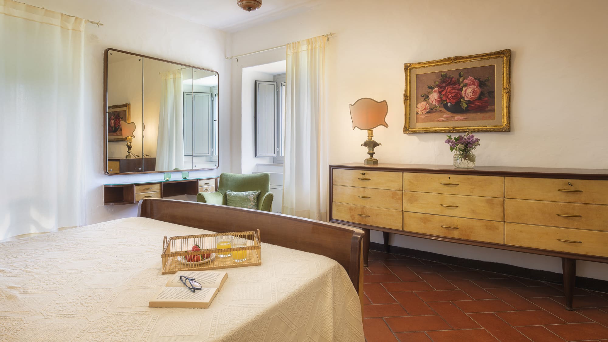 The interiors of this stunning apartment reflect a blend of traditional Italian architecture with modern comforts. The main villa and its annexe provide ample space, featuring two fully equipped kitchens and multiple lounges adorned with antique furniture and wooden ceilings. Each bedroom is air-conditioned, ensuring a restful night’s sleep, while the single bedroom, accessed via another room, is ideal for a child. A ground floor bedroom and bathroom cater to guests with reduced mobility.