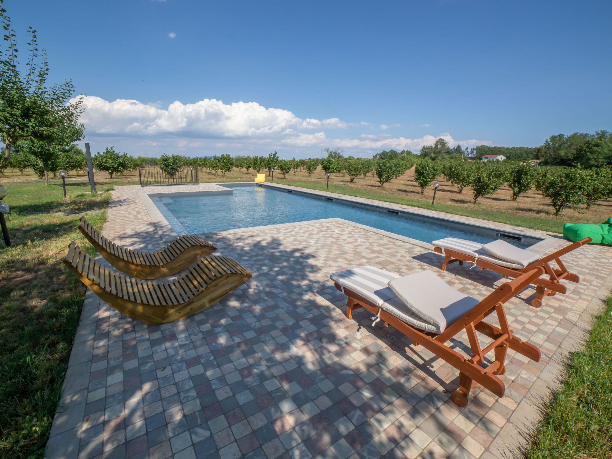 Recently renovated in 2022, this elegant property combines rustic charm with modern luxury throughout its carefully appointed interiors. The ground floor welcomes you with a spacious dining room featuring an atmospheric open-hearth fireplace, complemented by a well-equipped kitchen corner and convenient shower room with bidet. The master bedroom on this level offers direct garden access, its own en-suite bathroom with shower, bidet and WC, plus a flat-screen television for relaxed evenings. The upper floor houses two additional double bedrooms, each boasting private en-suite facilities and flat-screen TVs, with delightful terrace access offering sweeping countryside views. Modern amenities include air-conditioning, electric heating, WiFi internet, and the exceptional luxury of a private steam room.