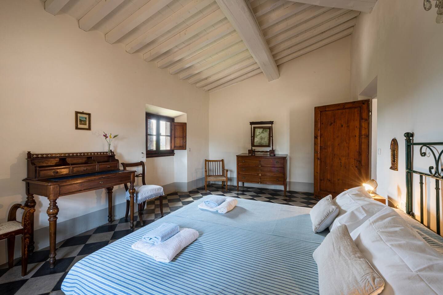 Spread across three meticulously designed floors, this stunning apartment harmonizes traditional Tuscan aesthetics with modern luxury. The spacious living areas feature comfortable seating and classic decor, ideal for relaxing with family and friends. The fully equipped kitchen is a culinary delight, perfect for preparing authentic Italian meals. Each of the seven bedrooms is a serene sanctuary, fitted with mosquito nets to ensure a restful night’s sleep.
