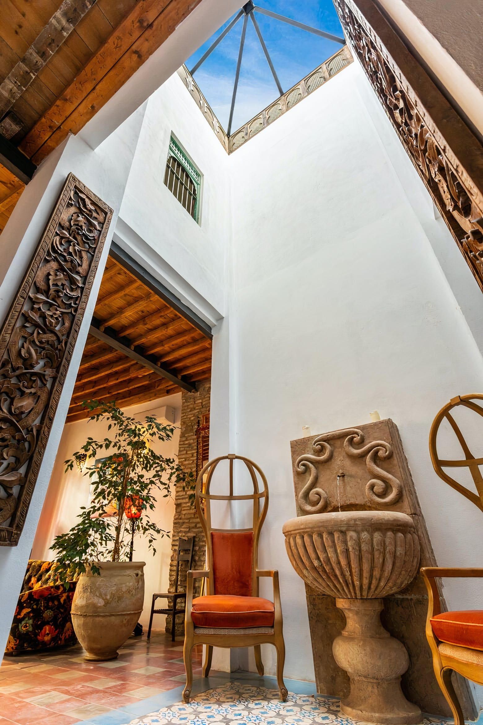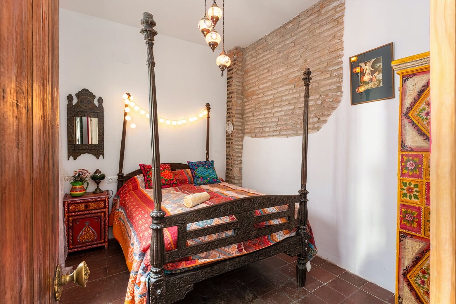 The interior reveals a captivating fusion of antique furnishings and southern Spanish character across multiple levels. The stunning Moorish-style kitchen serves as the home’s culinary centrepiece, featuring traditional tilework and modern appliances. Four thoughtfully appointed bedrooms accommodate up to eight guests, while three well-appointed bathrooms ensure comfort throughout your stay. Living spaces flow seamlessly between floors, creating intimate gathering areas filled with authentic architectural details and carefully curated antique pieces that reflect the building’s rich history.
