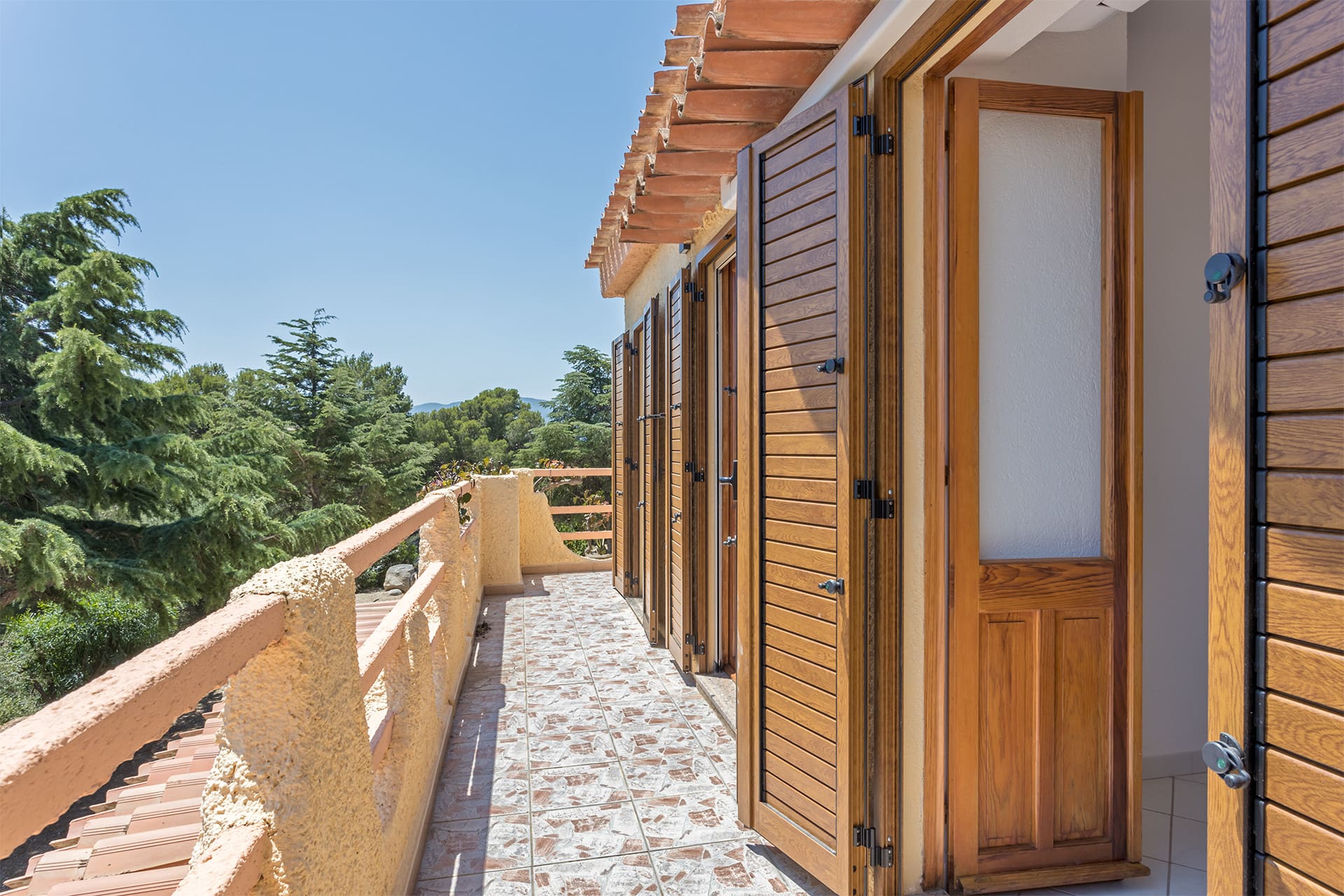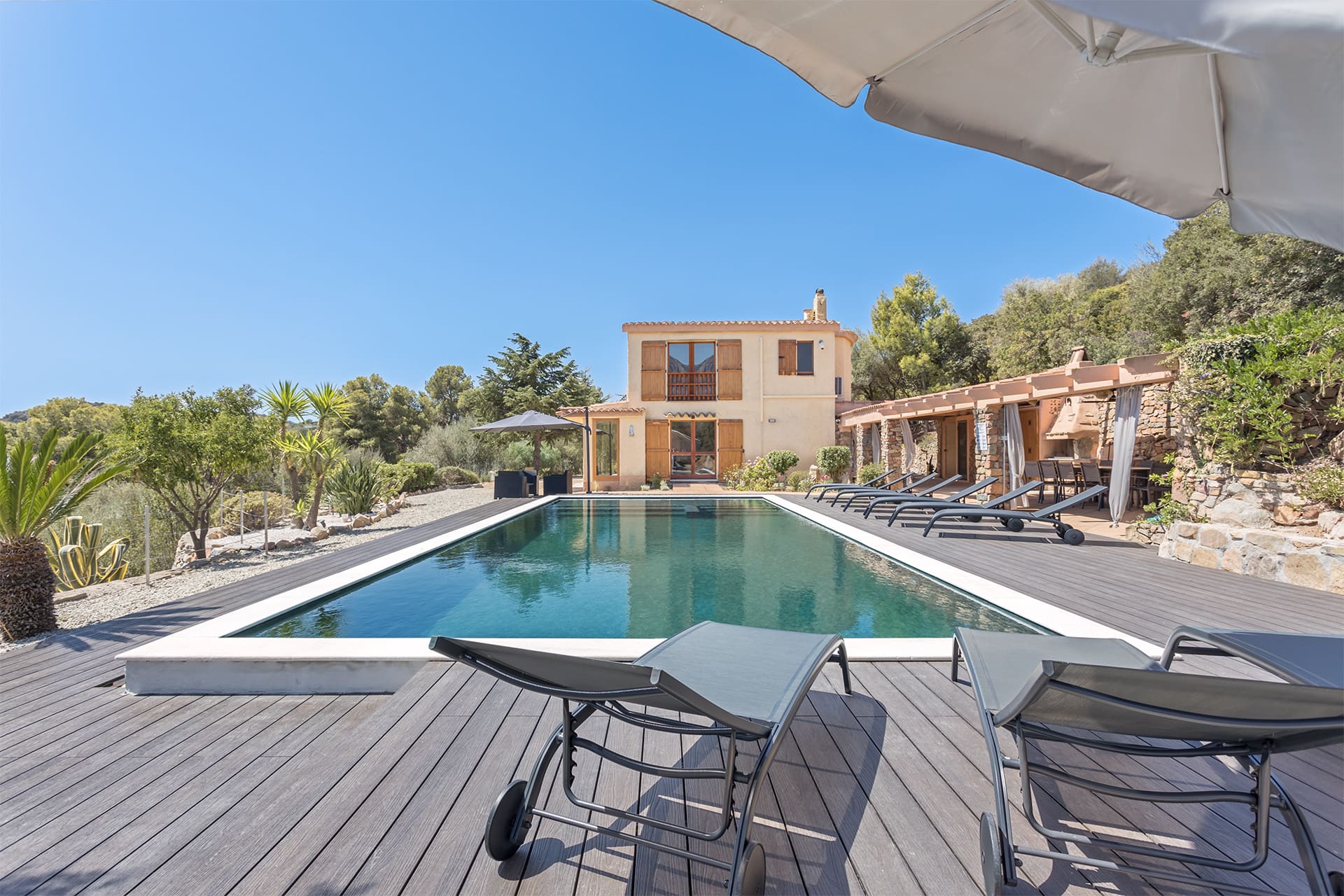 Outside, the infinity pool beckons for refreshing dips under the Mediterranean sun, with uninterrupted views of the sea and countryside. The expansive terrace is ideal for alfresco dining or simply lounging with a good book. Surrounded by lush gardens, the property offers ample space for children to play and explore safely.