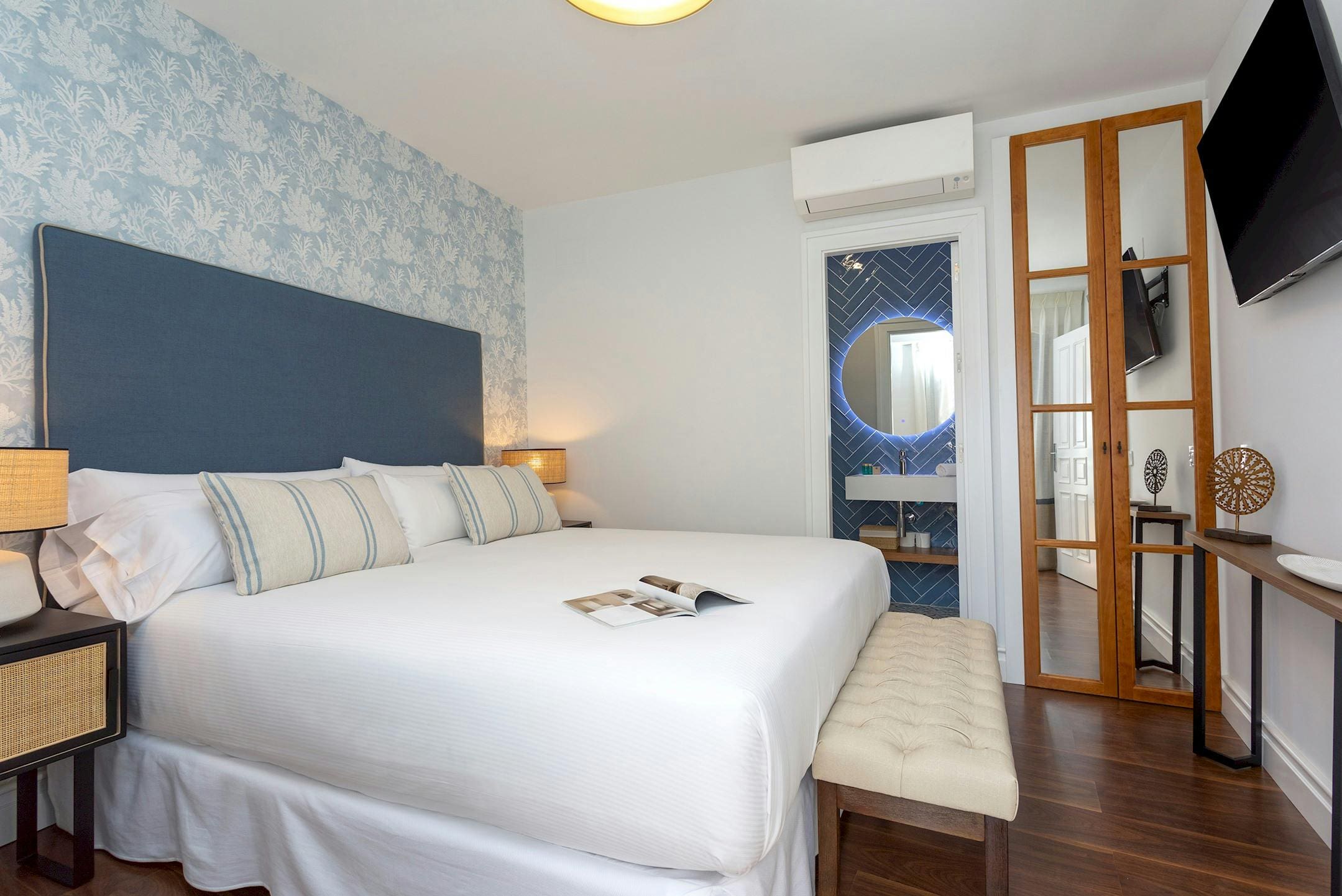 Casa Hércules Alameda accommodates up to eight guests, featuring four bedrooms and four bathrooms. The villa is set over three levels, with dark laminate stairs that require caution. Parking is available nearby, and guests are encouraged to explore the vibrant local area. Explore our luxury villa rentals in Spain for more exquisite properties.