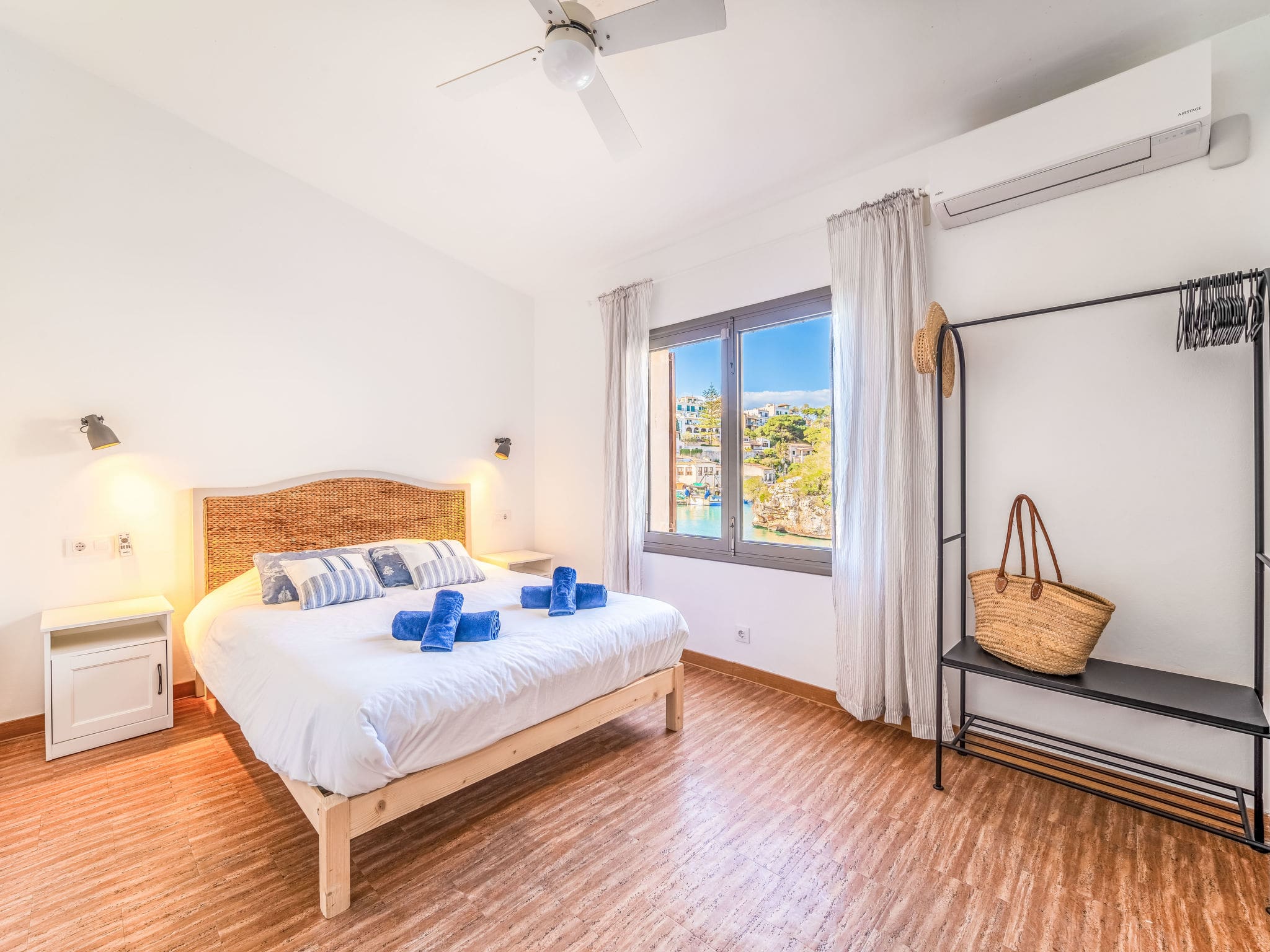 This beautifully appointed 164m² residence showcases the timeless appeal of Mallorcan architecture with its natural stone floors and romantic furnishings throughout. The spacious living and dining area features an enchanting open-hearth fireplace, perfect for cozy evenings, while air conditioning ensures comfort during warmer months. French doors open onto private terraces, flooding the interior with natural light and sea breezes. The well-equipped kitchen includes modern appliances including dishwasher, oven, microwave, and all essential amenities for self-catering holidays. Two comfortable bedrooms accommodate up to four guests, with the master bedroom featuring a luxurious French bed and the second bedroom offering twin beds, both with air conditioning and heating for year-round comfort.