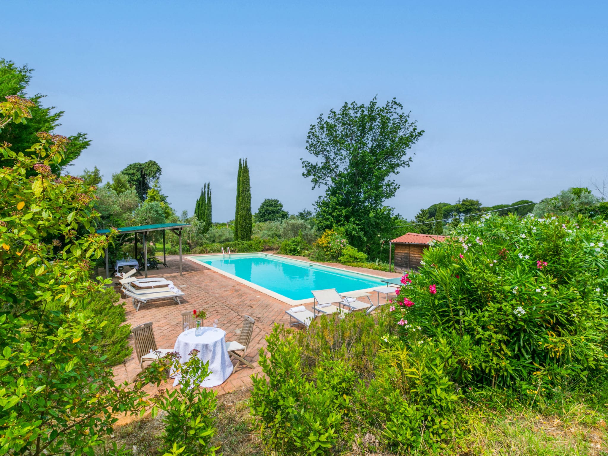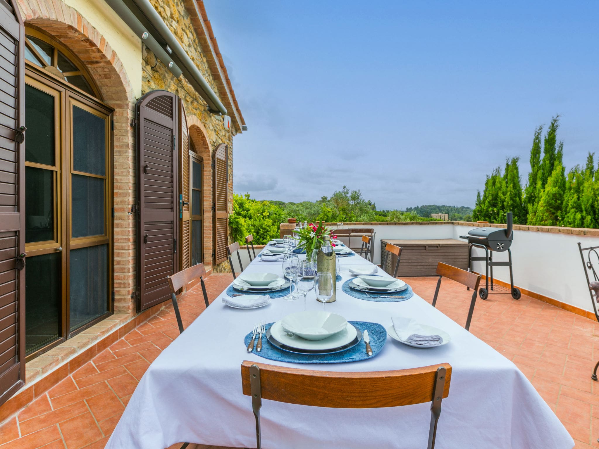 The property features comprehensive barbecue facilities and deck chairs positioned to maximise the spectacular views across the Tuscan landscape to the distant sea. The peaceful, secluded location at the end of a quiet cul-de-sac ensures complete privacy and tranquillity.