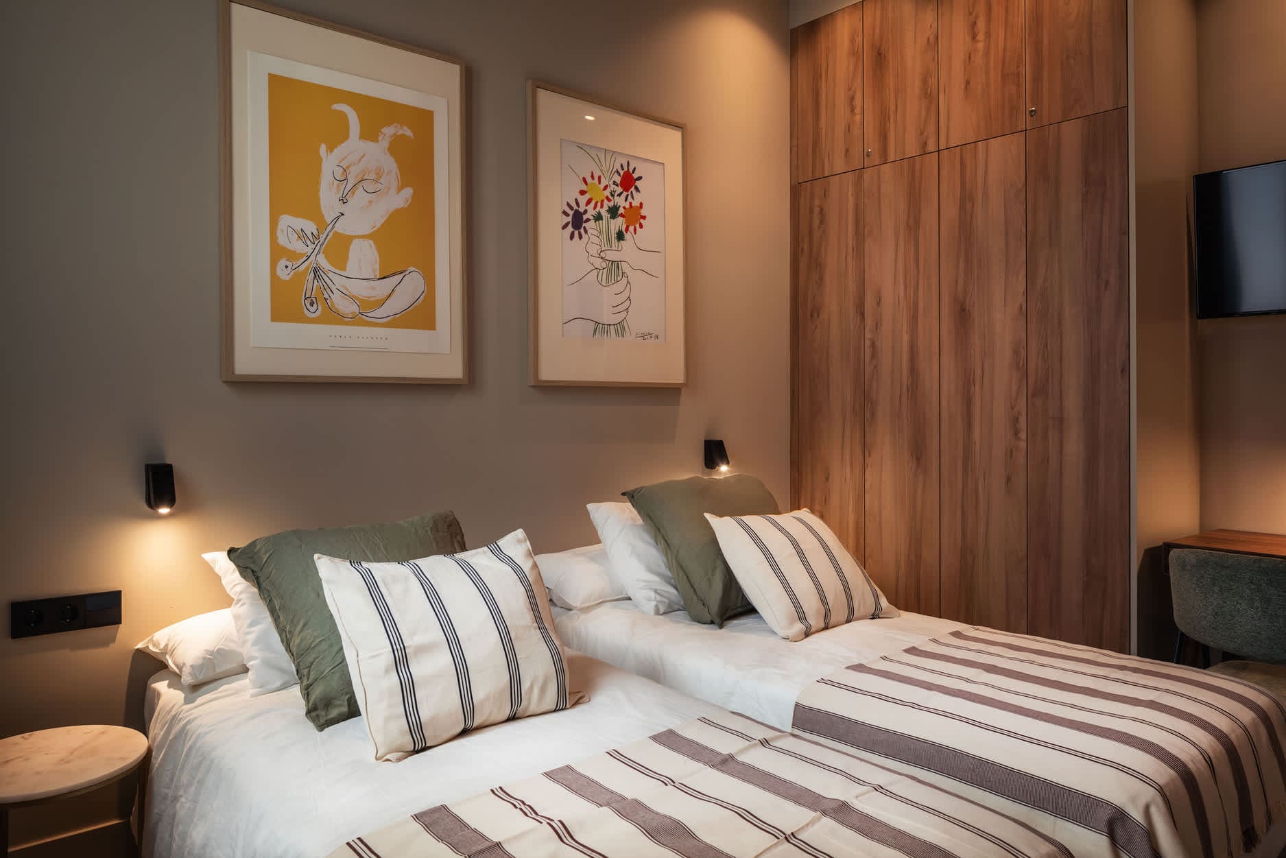 The apartment accommodates eight guests across four bedrooms, with additional sleeping arrangements on a sofa bed in the living room. A central location means some street noise is expected, and access is shared with other residents via a lift. For more options, browse our luxury villa rentals in Spain.