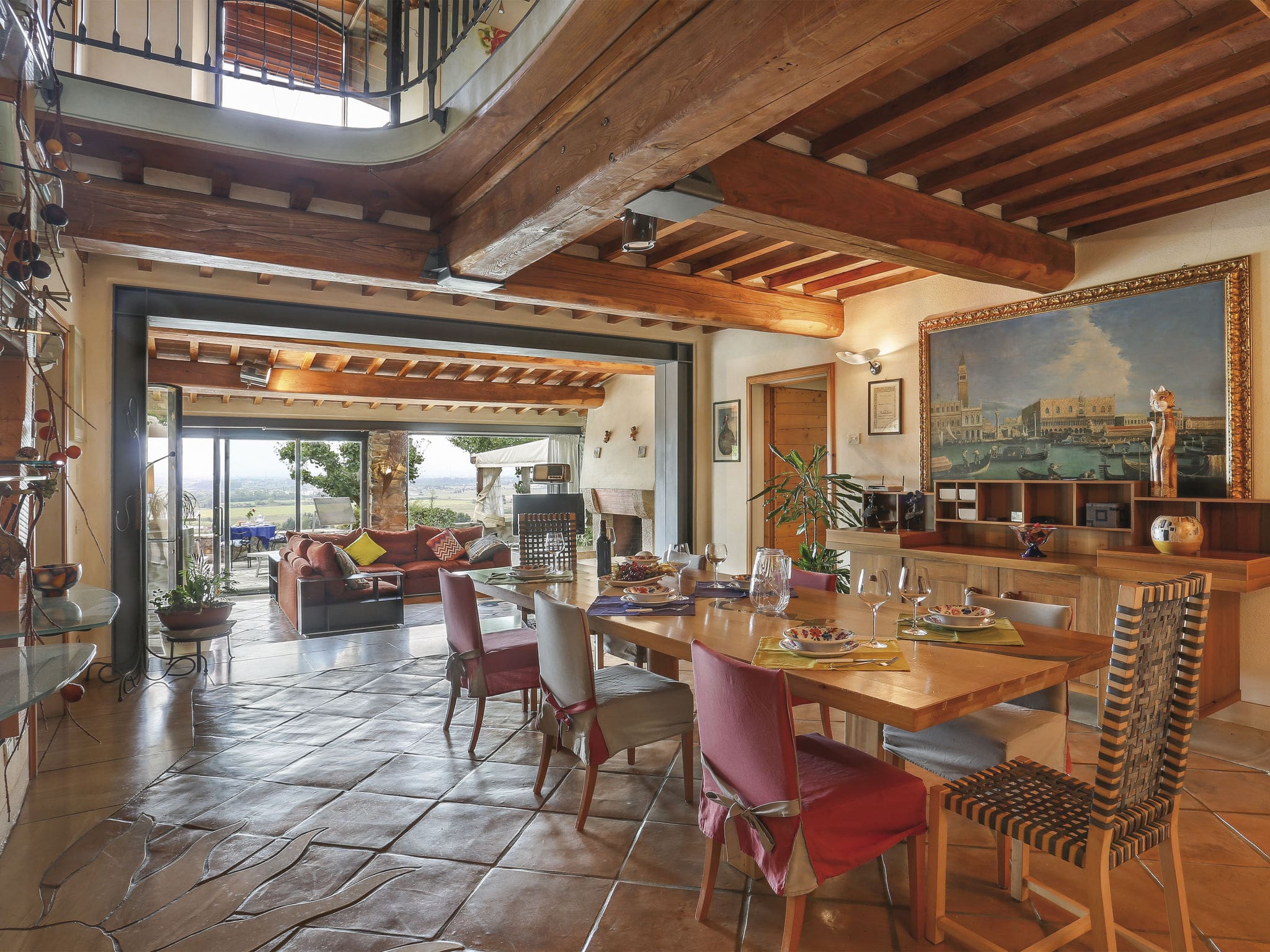 The expansive 5-hectare grounds feature natural gardens, meadows, and mature trees, creating a peaceful sanctuary where guests can reconnect with nature. The fenced property ensures complete privacy and security, while covered parking for four vehicles provides convenient shelter for guests’ cars. The estate’s elevated position at 100 metres above sea level captures cooling breezes and offers spectacular vistas across the Tuscan landscape.