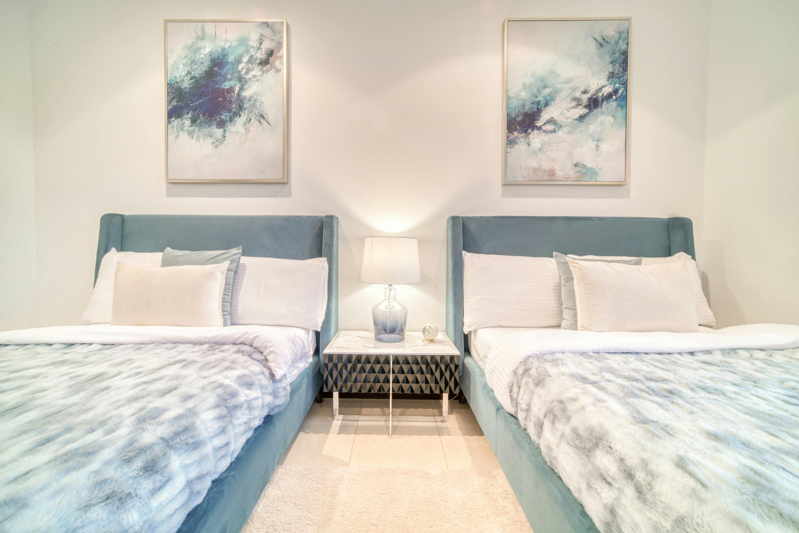 Step into a world of elegance and comfort as you explore the interiors of this five-bedroom apartment. Thoughtfully designed with high ceilings and adorned with beautiful artwork, the living spaces exude sophistication. The open-concept living area seamlessly flows into a modern kitchen, equipped with top-tier appliances. Each bedroom is a sanctuary of relaxation, featuring plush beds and en-suite bathrooms, ensuring privacy and comfort for all guests.
