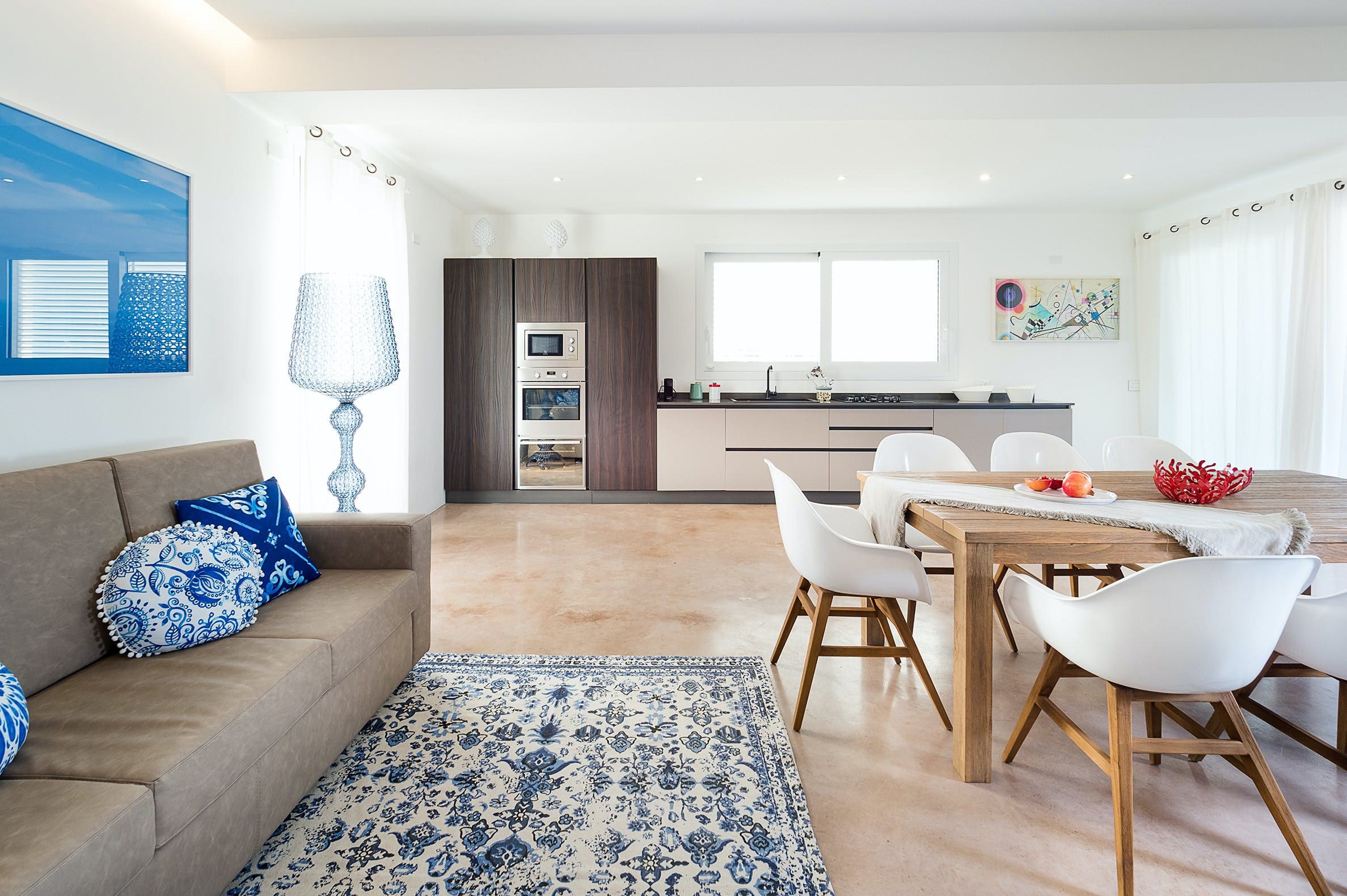 Step inside and be greeted by a sophisticated interior that seamlessly blends modern design with traditional Sicilian charm. The apartment boasts four spacious bedrooms, each with its own en-suite bathroom, ensuring privacy and convenience for all guests. The open-plan living area is ideal for gatherings, while the fully equipped kitchen invites you to indulge in culinary delights. The dining table doubles as a workspace, making it perfect for those combining leisure with remote work.