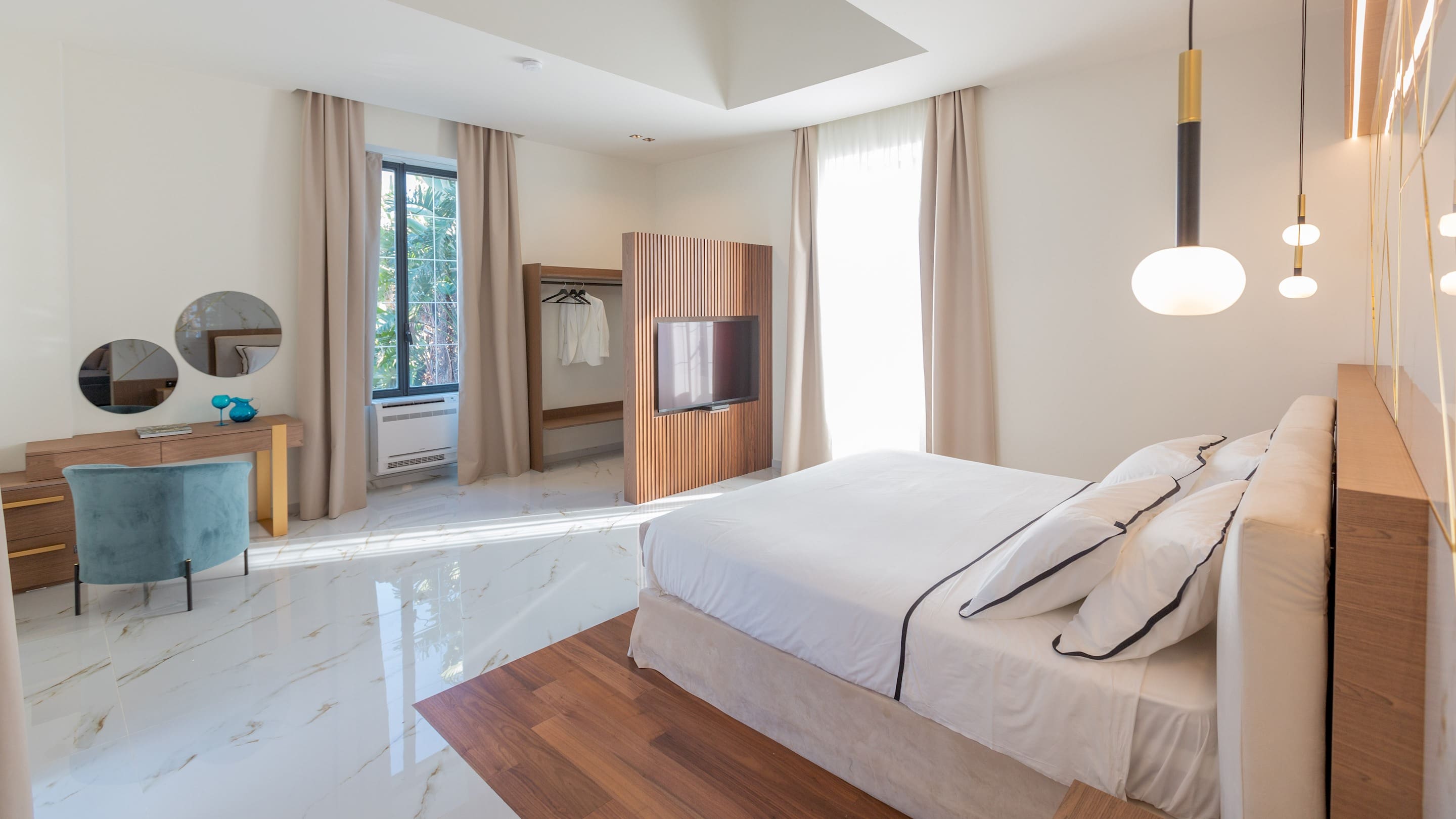 Step inside this exquisite apartment, where modern design meets classic Italian charm. The spacious interior boasts six beautifully appointed bedrooms, each with its own en-suite bathroom, ensuring privacy and comfort for all guests. The living areas are designed for relaxation and entertainment, featuring plush seating, a grand piano for musical evenings, and a state-of-the-art projection room perfect for movie nights. The fully-equipped kitchen with top-of-the-line appliances and a marble-topped dining table provides the perfect setting for gourmet meals.