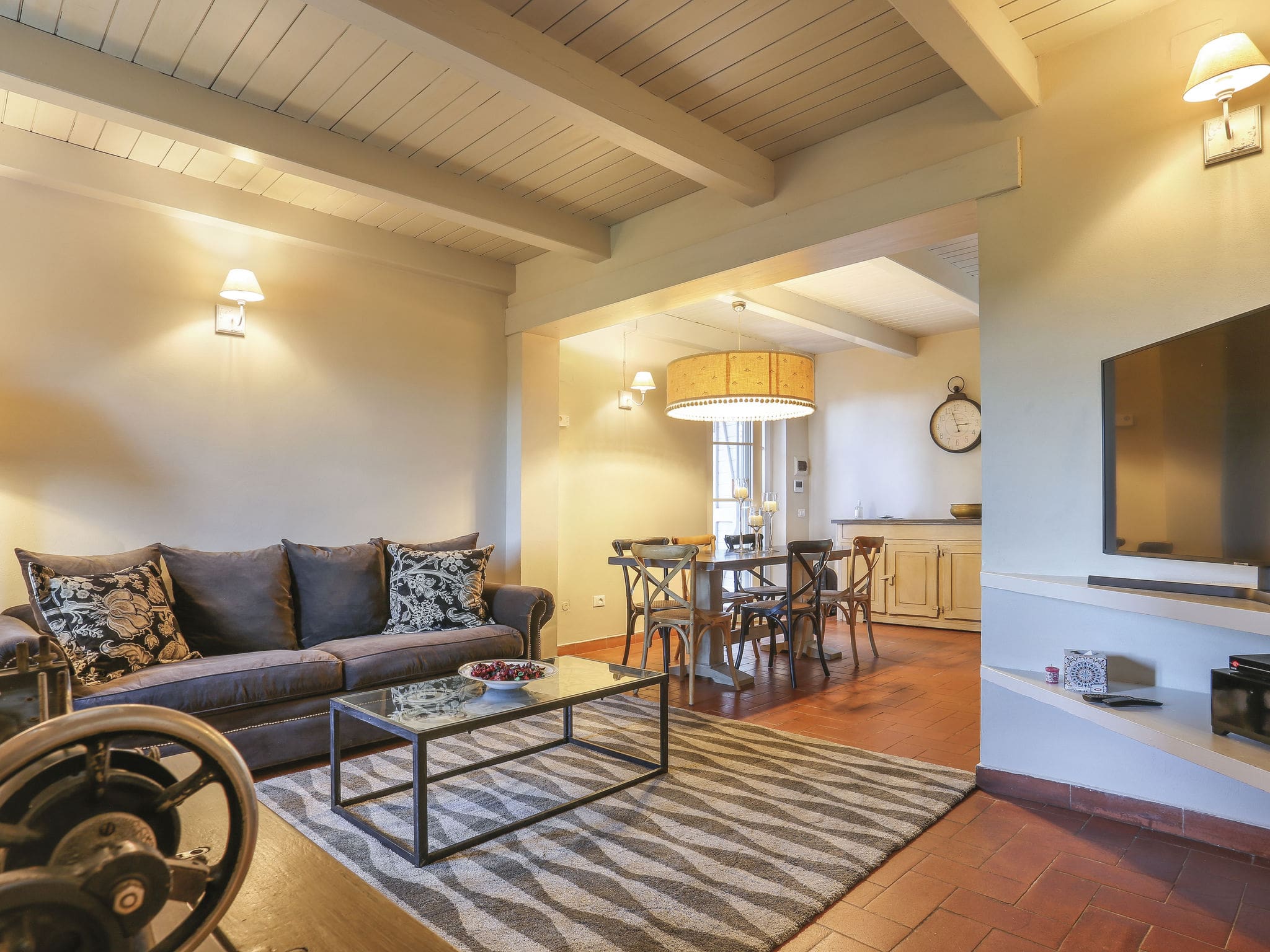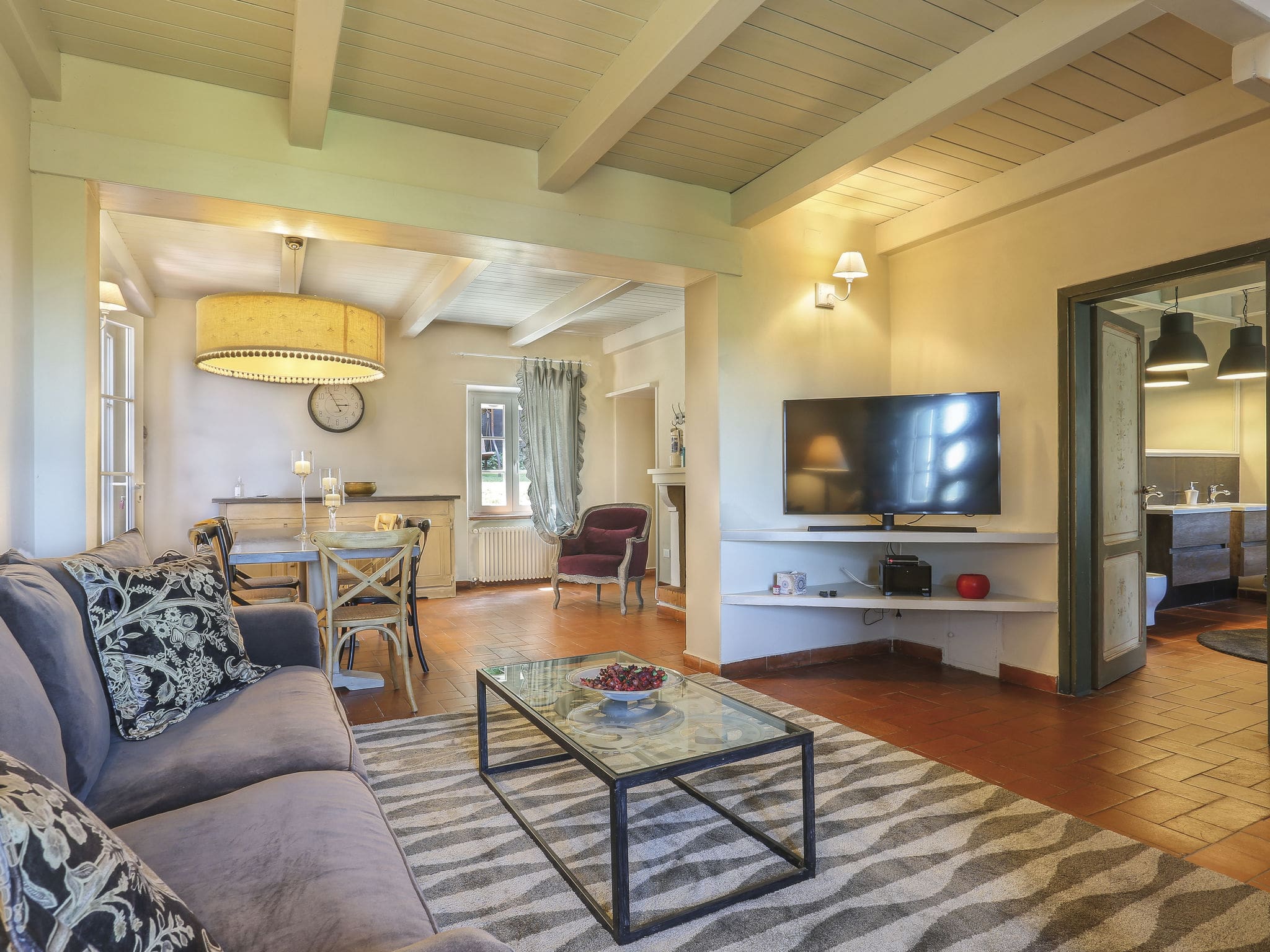 Completely renovated in 2019, this 160-square-meter farmhouse showcases the finest in Tuscan design across two thoughtfully planned levels. The heart of the home features a welcoming living and dining area with an open-hearth fireplace and satellite television, while the fully equipped kitchen includes modern appliances from dishwasher to electric coffee machine. Rich wooden floors flow throughout the space, creating warmth and continuity between the comfortable social areas and three bedrooms. Two master bedrooms on the upper floor feature double beds and air conditioning, while a third bedroom with a French bed provides flexible accommodation. Two full bathrooms, including one with a double basin, serve the property’s eight guests with style and convenience.