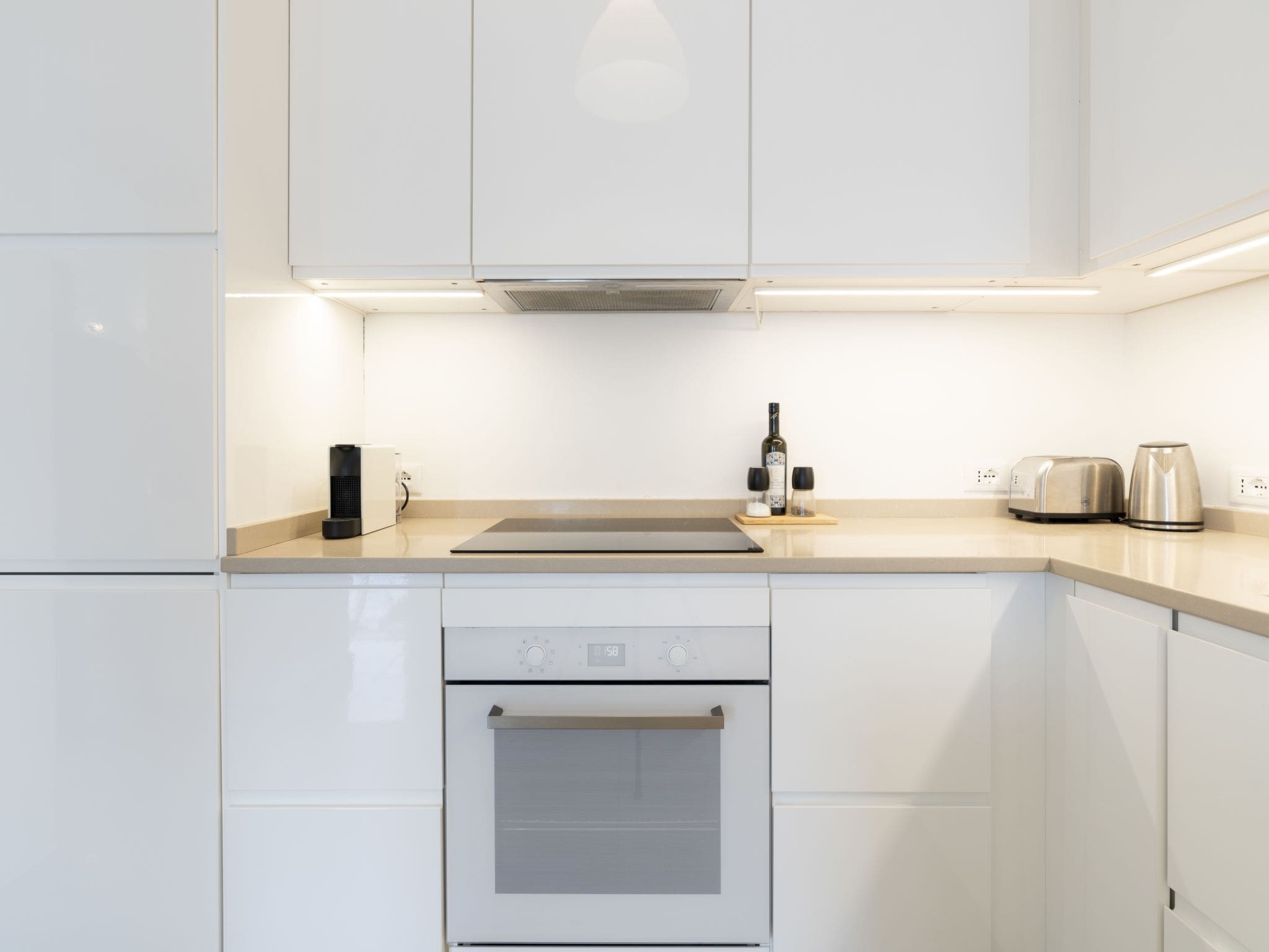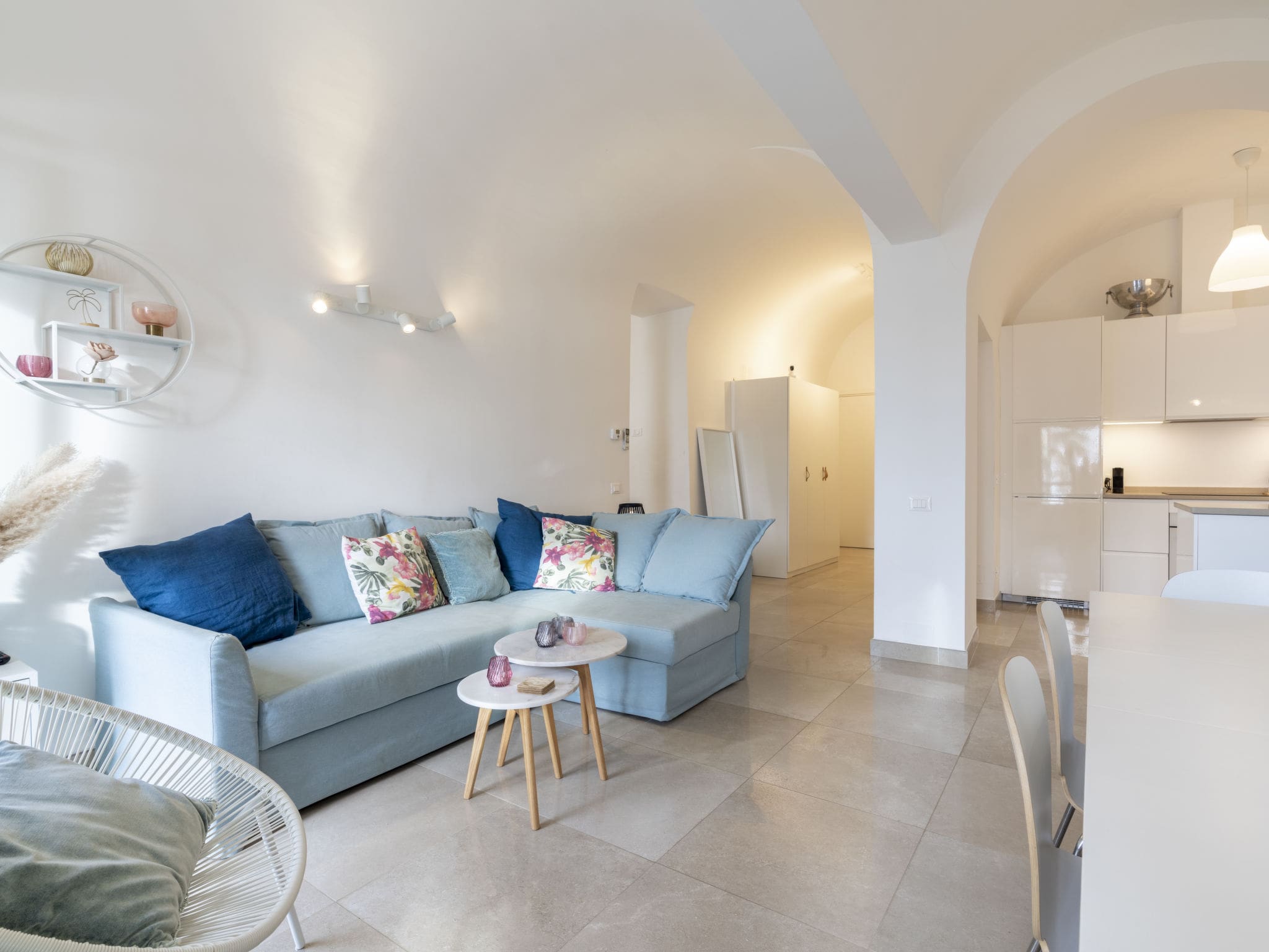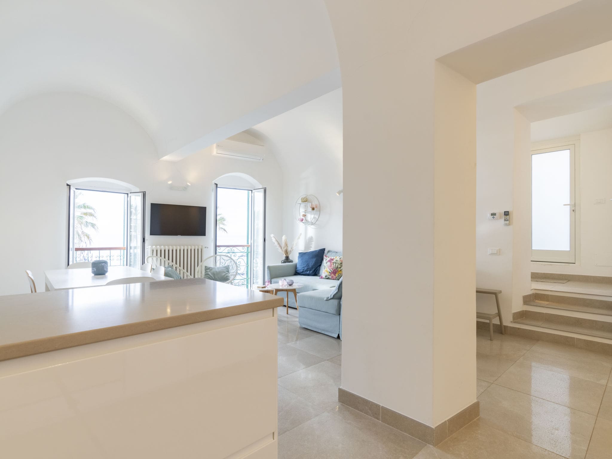 Spanning 150 square metres across two thoughtfully designed levels, this historic property combines original architectural character with modern amenities. The ground floor welcomes guests with a bright living and dining area featuring a comfortable double sofa bed, complemented by an open kitchen equipped with induction cooking, dishwasher, and premium appliances. The master bedroom on this level includes an en-suite shower room, while the upper floor houses a charming bunk room perfect for children and a second double bedroom. Both upper bedrooms open onto private balconies overlooking the Mediterranean. Throughout the property, double-glazed windows ensure tranquility while air conditioning provides comfort during warm Italian summers. Modern conveniences include complimentary WiFi, washing machine, and energy-efficient lighting systems.