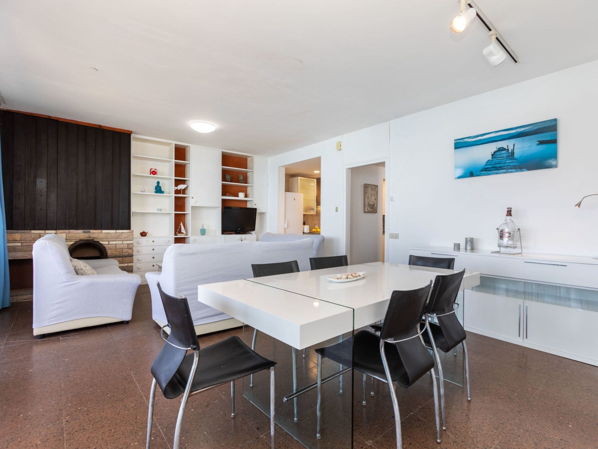 The expansive terrace serves as the apartment’s crown jewel, offering breathtaking views across the Mediterranean Sea. Furnished for outdoor dining and relaxation, this space provides the ideal setting for al fresco meals, afternoon siestas, or watching spectacular sunsets over the water. The direct beach access means guests can step from their terrace to the sand in moments, while the nearby promenade offers pleasant evening strolls along the coastline.